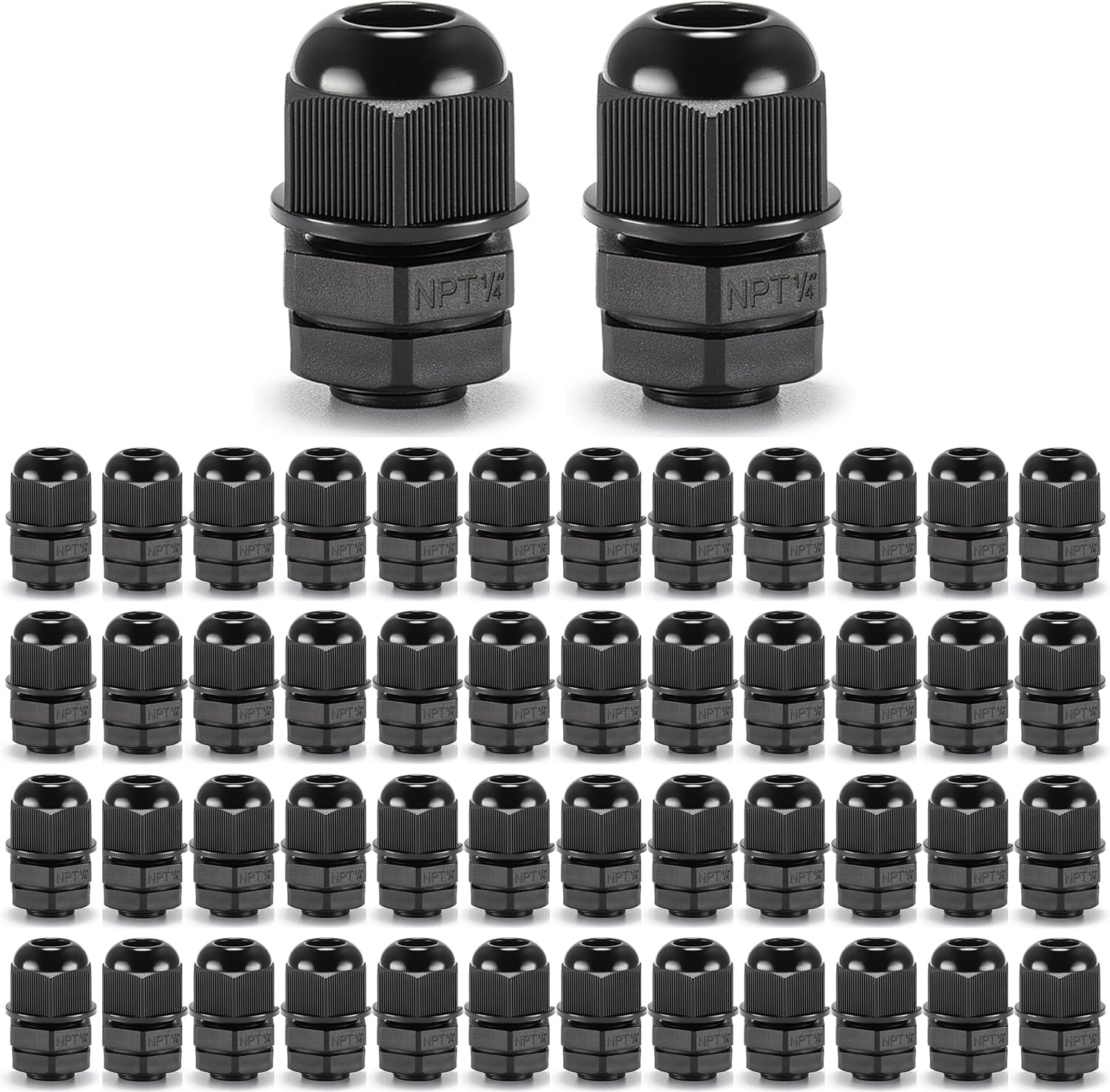 QILIPSU 50pcs 1/4" NPT Cable Gland Waterproof IP68 Nylon Cable Pass Through Cord Grip Connector Strain Relief Wire Grommet