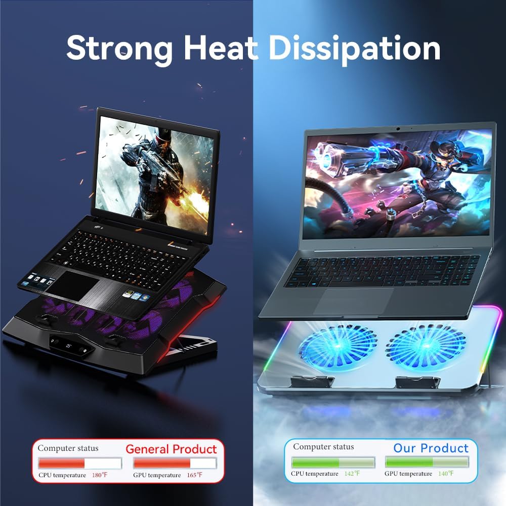 - 【Professional Gaming Cooling Pad】KYOLLY laptop cooling pad is designed to fit for up to 17.3 inch large laptops for helping to cool down the temperature and ergonomic for those who staring at computer for a long time.