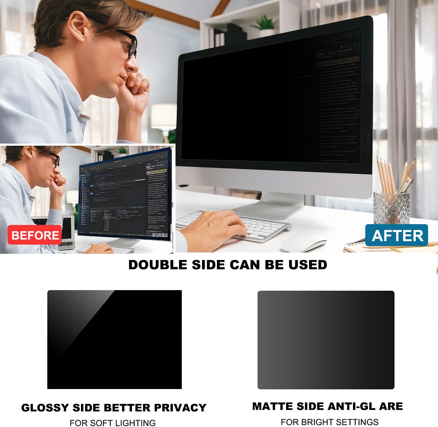 32 Inch Computer Privacy Screen Shield [2 Pack] for 16:9 Widescreen Desktop Monitor - Anti-Glare Blue Light Privacy Filter and Anti Spy Privacy Screen Protector Film