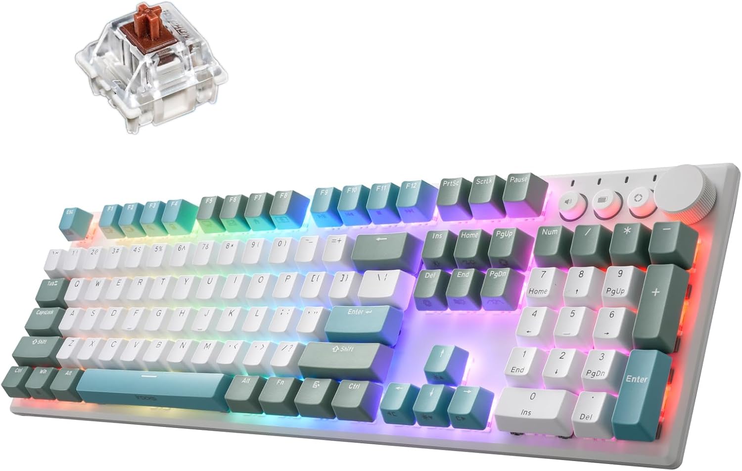 iRocks K74R Wireless RGB Illuminated Mechanical Gaming Keyboard, Hot-Swappable Switches, Easy-Clean Floating Design, PBT 107 Keys NKRO, Detachable USB-C Cable - Island Blue (Brown Switches)