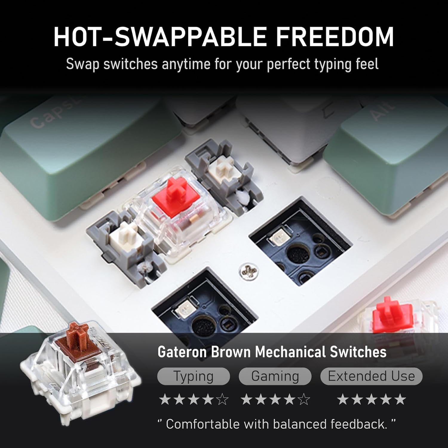 - HOT SWAPPABLE SWITCHES ⚡️ Much more convenient for DIY users, eliminating the need for a soldering iron or other tools to replace the switches you prefer. It saves time and effort. Delivering up to a 50 million click lifespan, N-key rollover, and anti-ghosting powered by an advanced microcontroller.