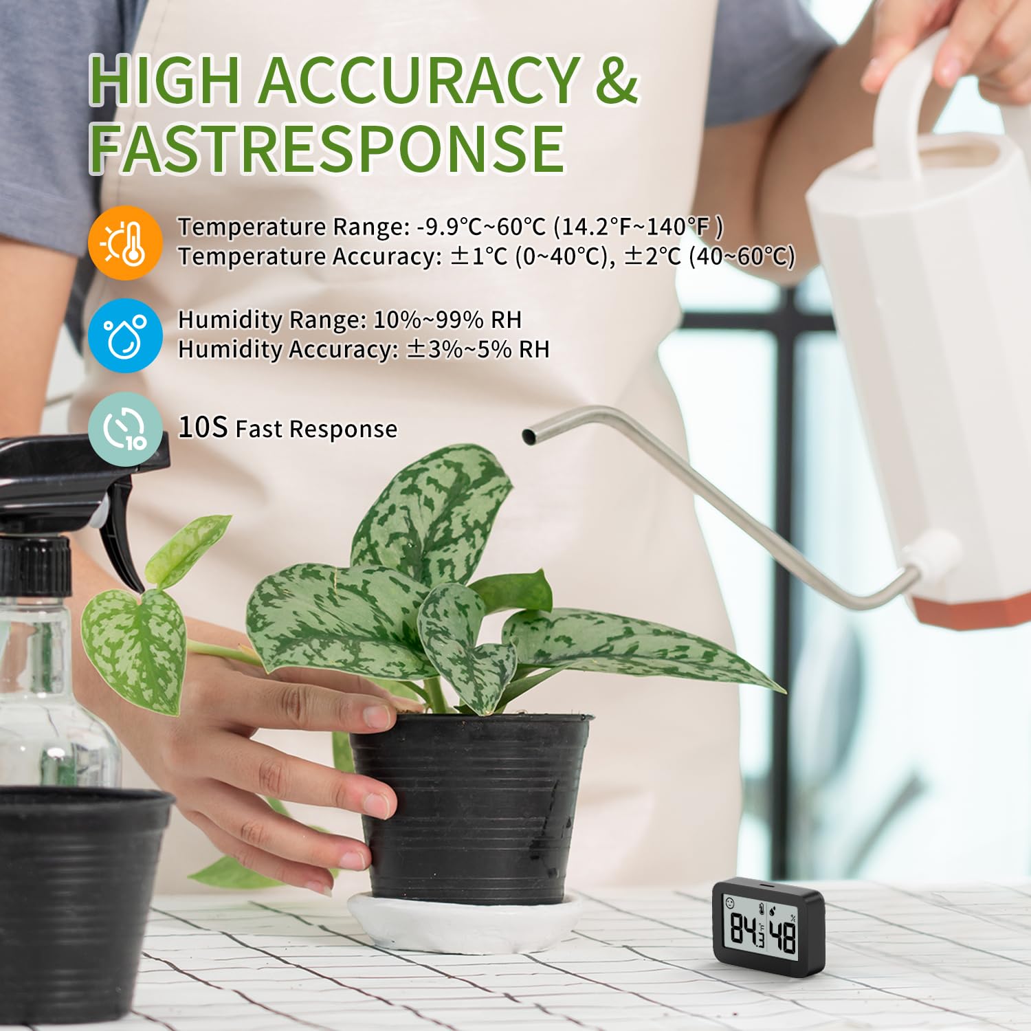 - 【High Accuracy】Doomay Meter monitors the environment reliably every 10 seconds with 11 sensitive vents to provide updated and accurate readings. Wide measuring range: work temperature from -9.9℃ to 60℃, humidity from 10% to 99%. The temp accuracy range around +-1℃ while humidity accuracy is +-3-5% RH(0-40℃)