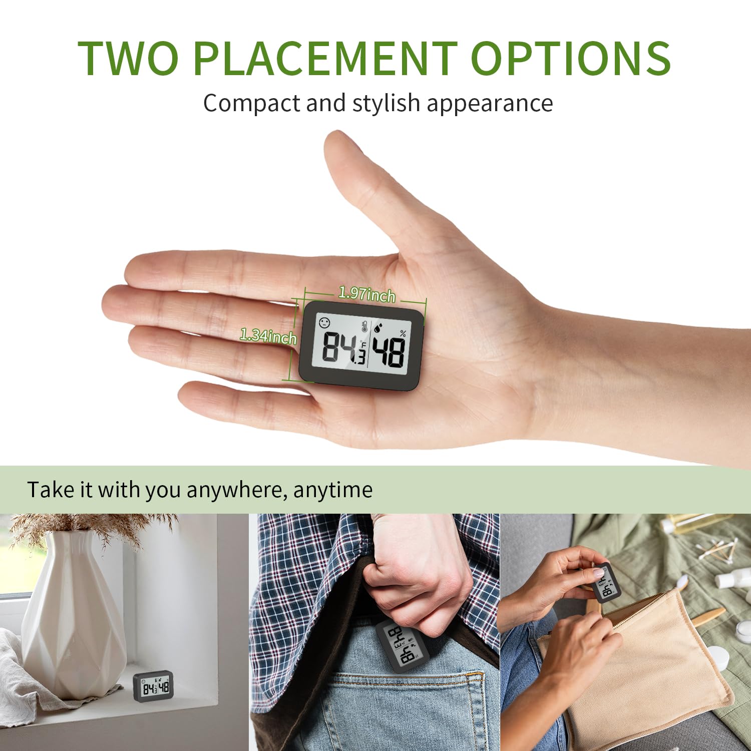 - 【Compact Size】The Mini rectangle digital humidity thermometer allows you to easily know the environment temperature and humidity. Small, Durable and Portable enough for saving space and carrying around. Mini Size: 2 inch * 1.34 inch * 0.51 inch