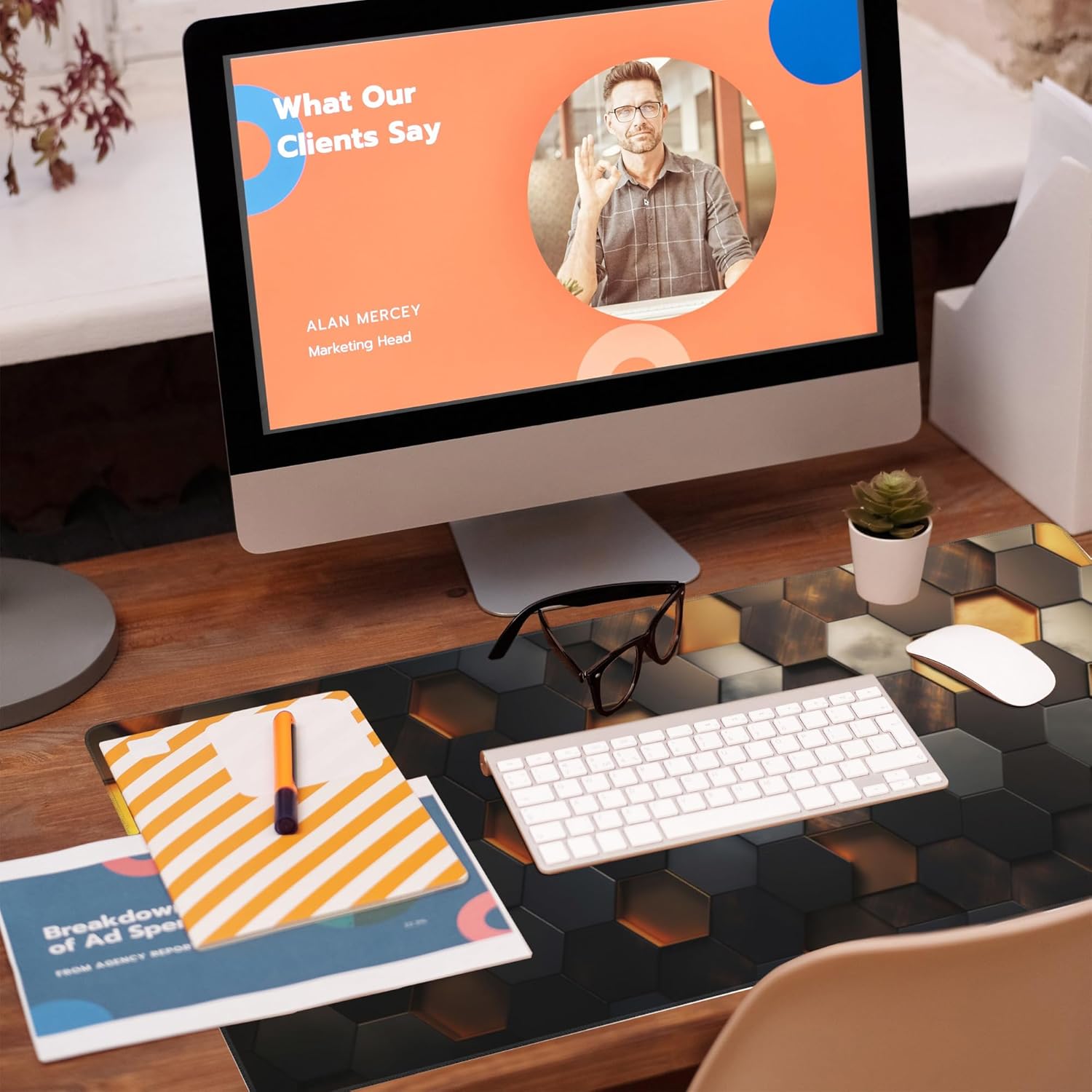 Desk Mat - Golden Honeycomb Technology Large Gaming Mouse Pad With Non-Slip Base and Stitched Edge, Extended Big Computer Keyboard Pad, 35.4"x15.7"