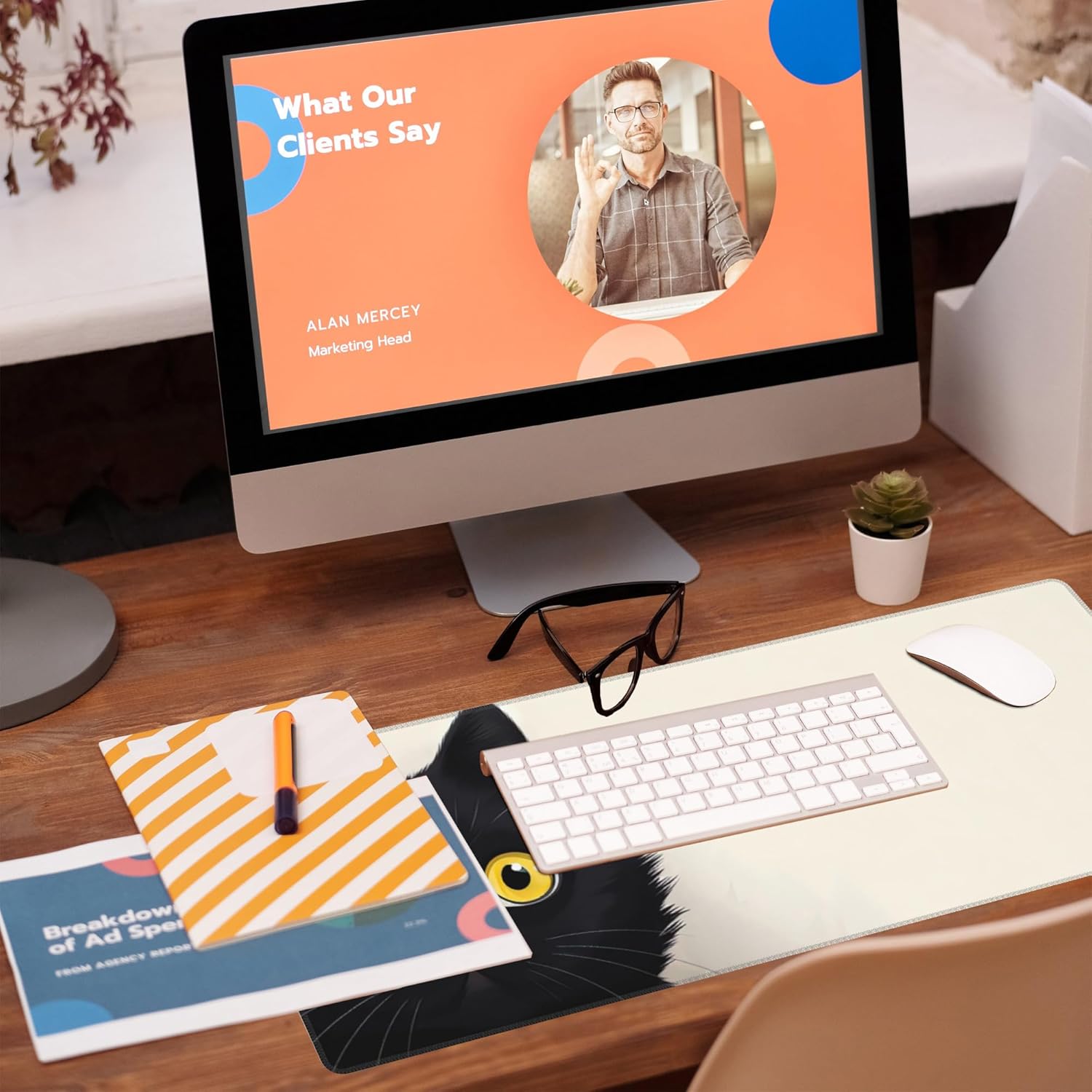 Desk Pad,Black Cat Desk Mat,Cute Cat Large Gaming Mouse Pad for Desk,Extended Big Computer Keyboard Mouse Pad with Non-Slip Base and Stitched Edge,31.5"x11.8"