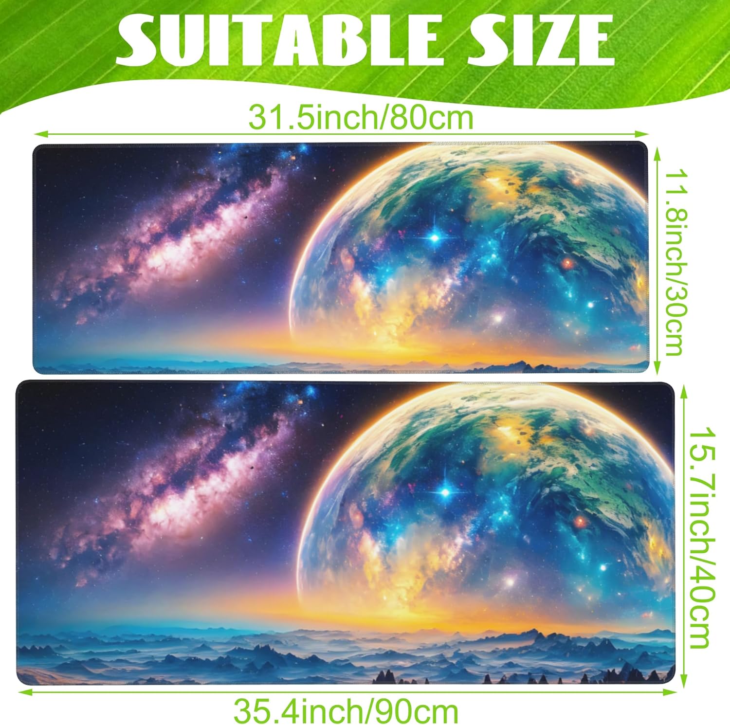 Desk Mat,Galaxy Earth Planet Desk Pad,Science Fiction Cosmic Large Gaming Mouse Pad for Desk,Extended Big Computer Keyboard Mouse Pad with Non-Slip Base and Stitched Edge,35.4"x15.7"