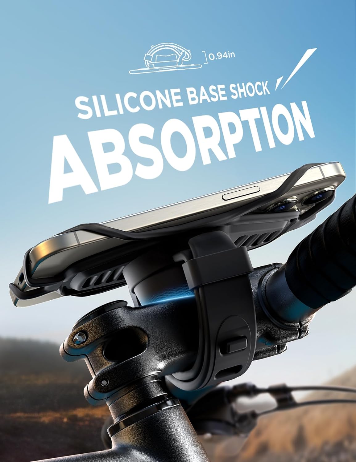 - 【Effective Anti Vibration Bike Phone Mount 】JOYROOM bike phone holder is upgraded with a thickened soft silicone base, which can absorb the vibrations that occur during riding. You don’t have to worry about your phone flying out or getting scratched, and it more effectively protects your expensive phone from damage