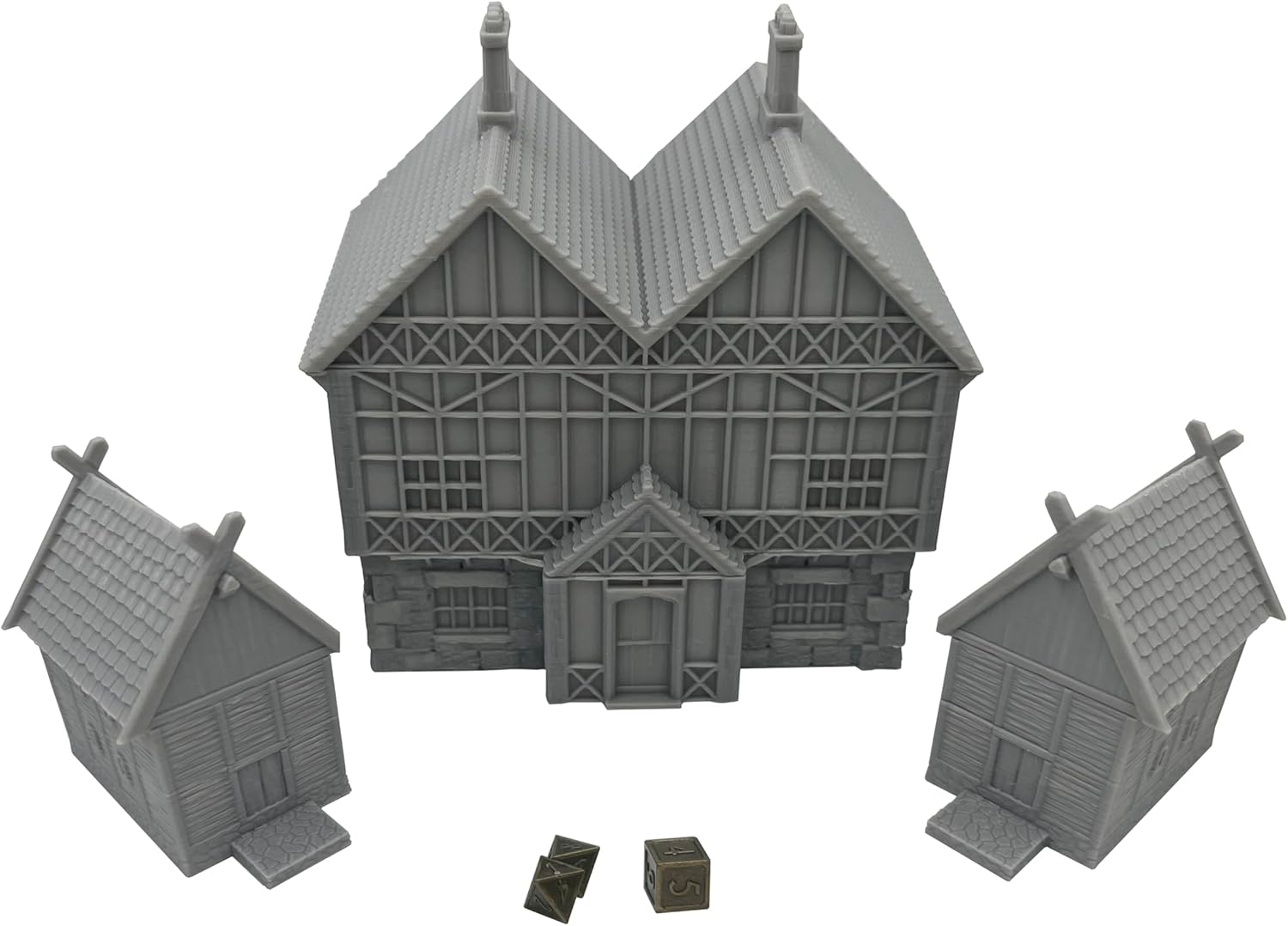 HAUTICO Miniature Buildings, Architecture Terrain Scenery for 18mm RPG Tabletop Wargame, DND, Paintable (HVillageHouses3-1)