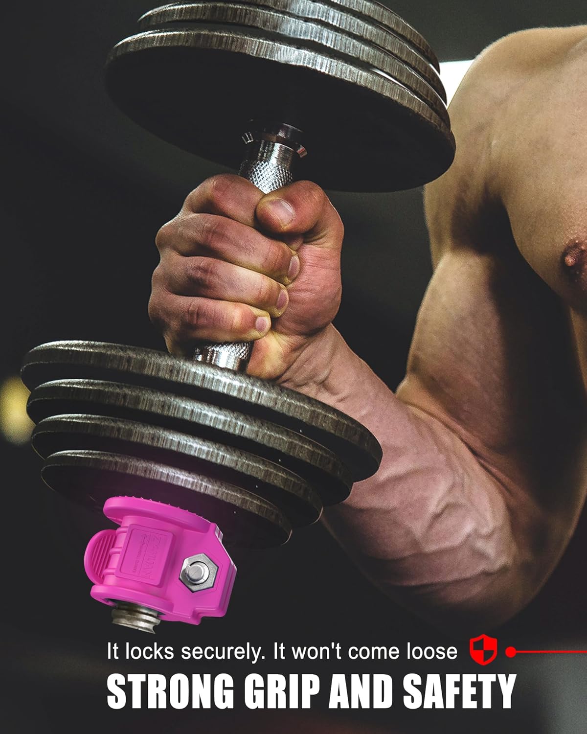 - ✔STRONG GRIP:Weight bar clips are specially designed for weightlifting and designed to provide an extra secure grip.Use these weight clips to hold your weights in place(Weight: 400+lbs)so they don't go rolling around while you're lifting. The proof of strength, even if you hold the dumbbell vertically(Weight: 60lbs), you can keep the weight! These weightlifting clips are perfect for dumbbell rows,benching, squatting etc.