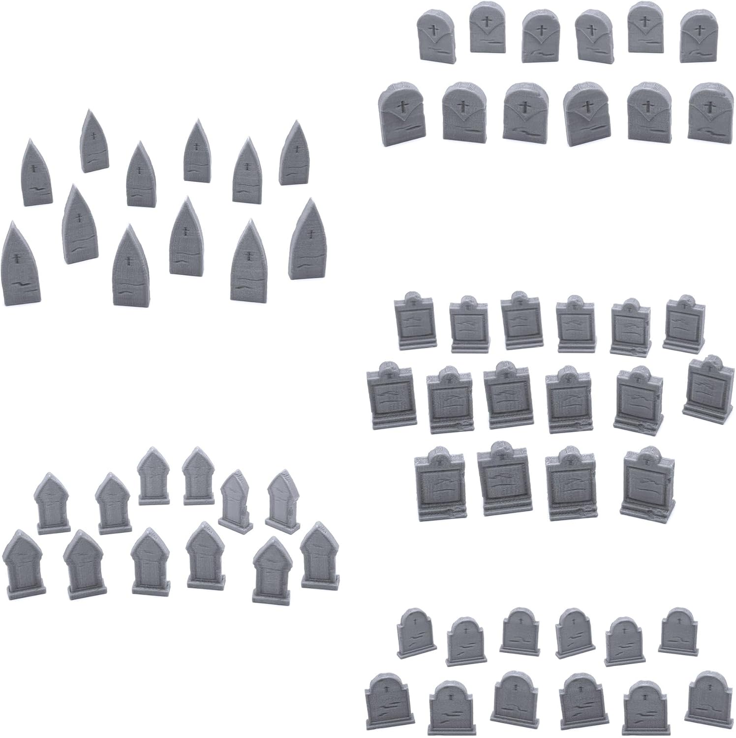- Great value! Set includes 64 tombstones in 5 varieties.