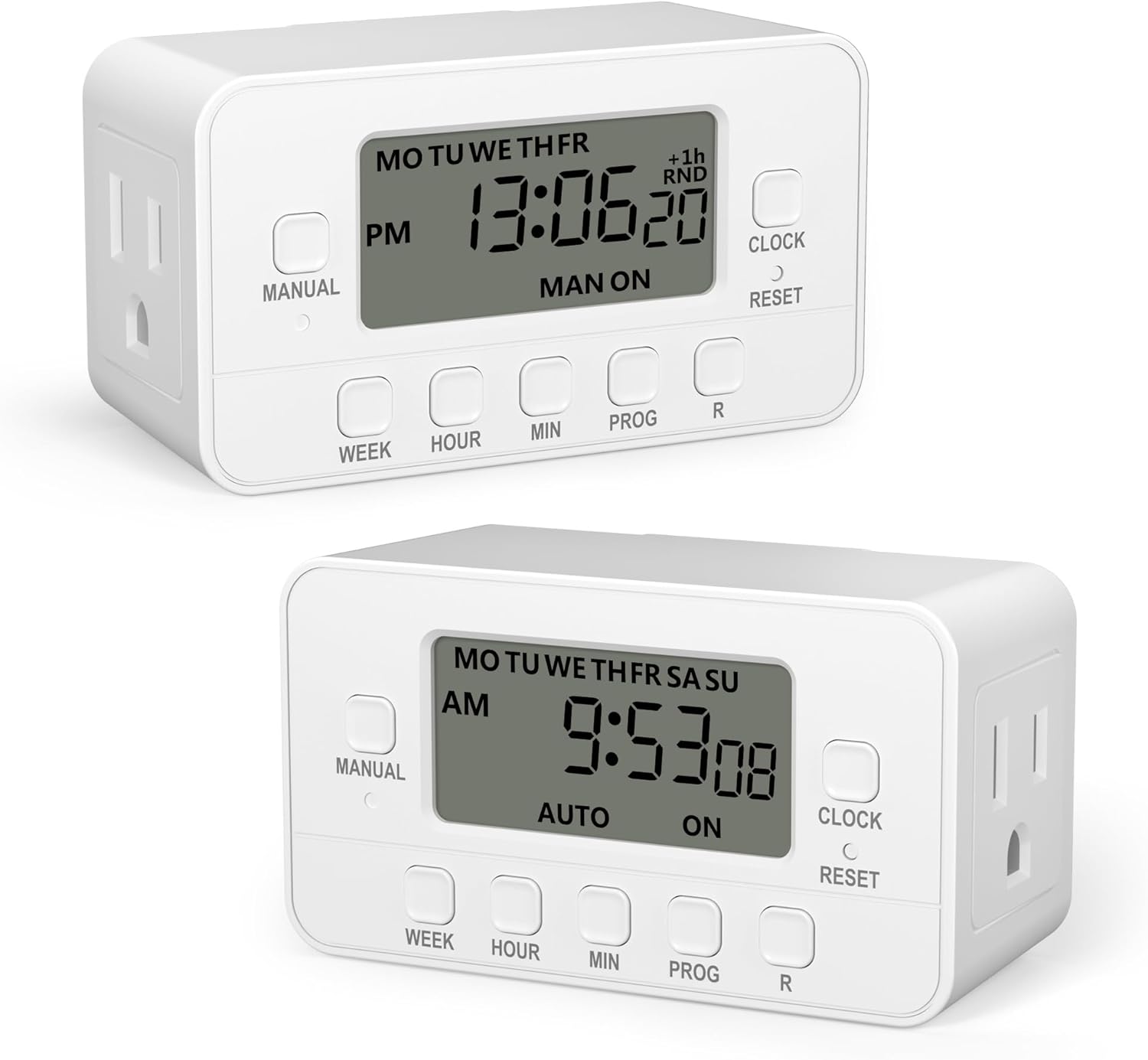 - SIMPLE SETUP & OPERATION: BN-LINK dual digital outlet timer is user-friendly. Customize specific days or opt for pre-set combinations effortlessly. It even accommodates daylight saving time. Enjoy unmatched convenience with just a quick set and go!