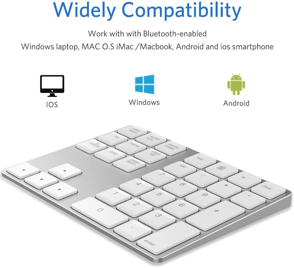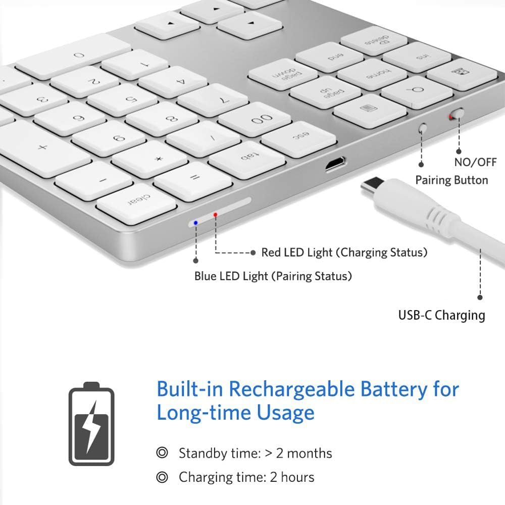 Bluetooth Number Pad, Wireless Numeric Keypad, USB-C Rechargeable External 34-Keys Numpad, Financial Data Entry Keyboard for iMac, MacBook Air/Pro, PC Desktop, Laptop Notebook(Silver)