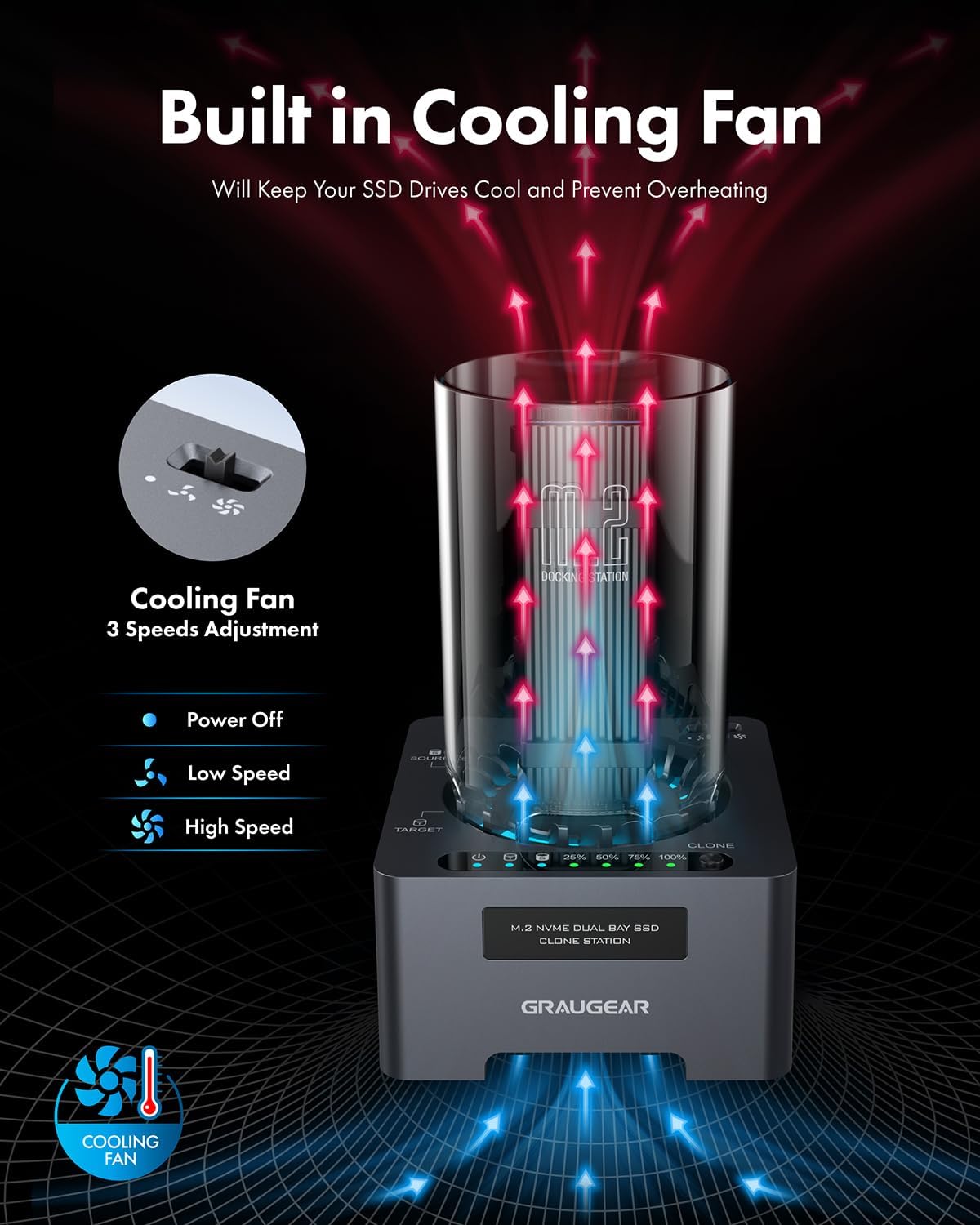 GRAUGEAR NVMe M.2 SSD Duplicator Dual-Bay Offline Clone Tool-Free, 20Gbps USB C to M.2 SSD Drive Cloner Docking Station Adapter Enclosure for M2 SSD Hard Drives M-Key