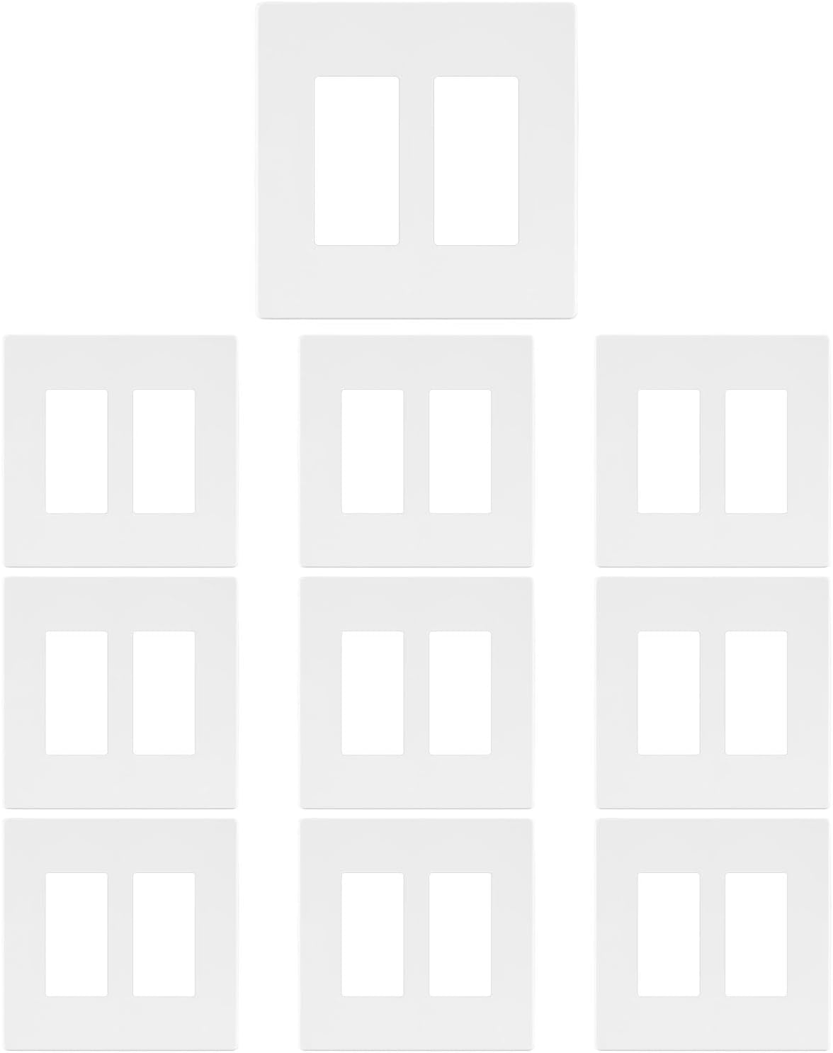 2 Gang Decorative Screwless Wall Plate Light Switch Cover, Hidden Screw Smooth Face, White, 10 pcs
