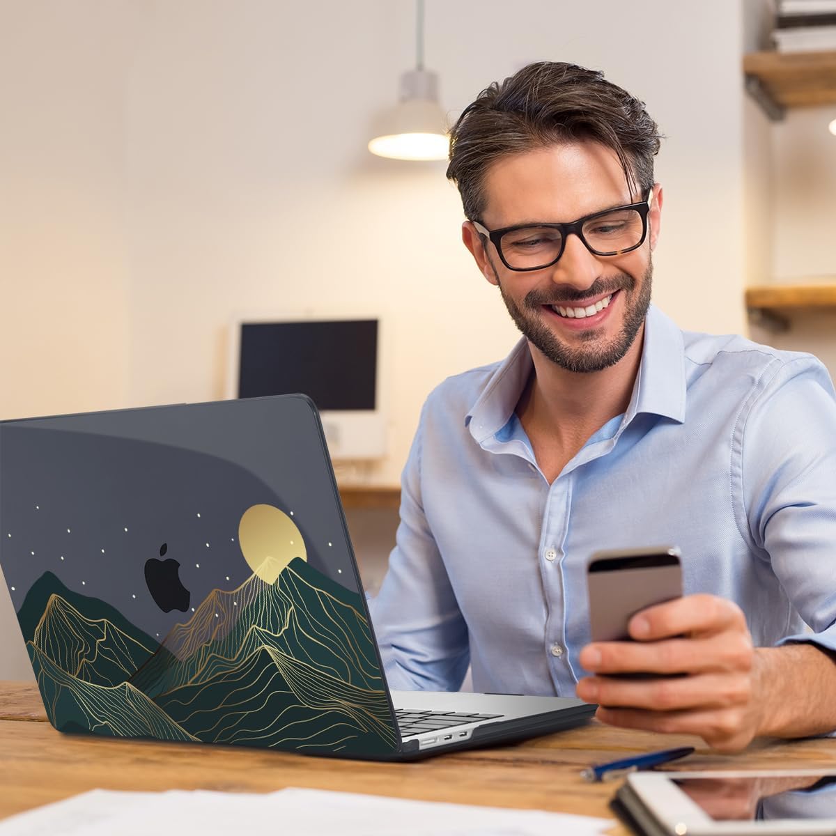 Teryeefi Compatible with MacBook Air 15 inch Case 2023 2024 A3114 A2941 with M3 M2, Plastic Hard Case & Keyboard Skin & Screen Protector for MacBook Air 15.3" Retina Display Touch ID, Mountain Sun