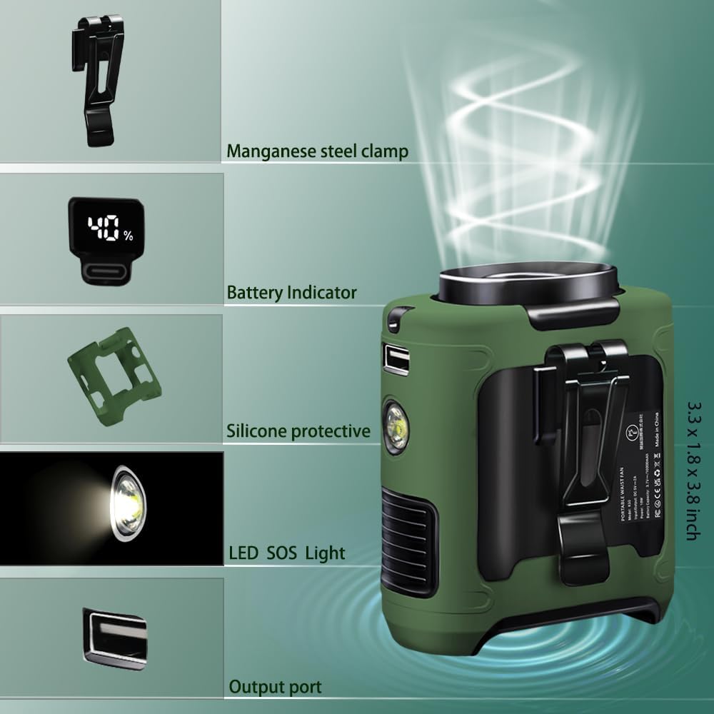 - 【Comprehensive Upgrade, Durability】: The 2024 upgraded clip-on waist fan is our sixth-generation fan featuring a through-flow fan design. It boasts a more powerful motor, an enhanced silicone protective cover, emergency phone charging capability, and upgraded manganese steel clips. The performance has been improved