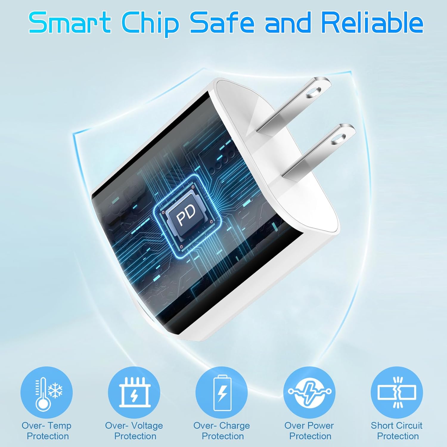 - 【iPhone 16 15 Pro Charger Fast Charging Adapter Safe and Reliable】The Dual Port USB C iPhone 15 Pro Wall Charger Fast Charging Adaptorhas the Function of Automatic Protection Circuit.Built-in Safety Wwitch in USB C Plug Against Over-Current,Over-Voltage and Short-Circuit,Ensuring Maximum Safety.Withstanding 12,000+ Bending Test,the USB C to USB C Charging Cable is Stronger and Long-Lasting than others.The Length of the 6FT is Enough to Suit a Variety of Scenes.