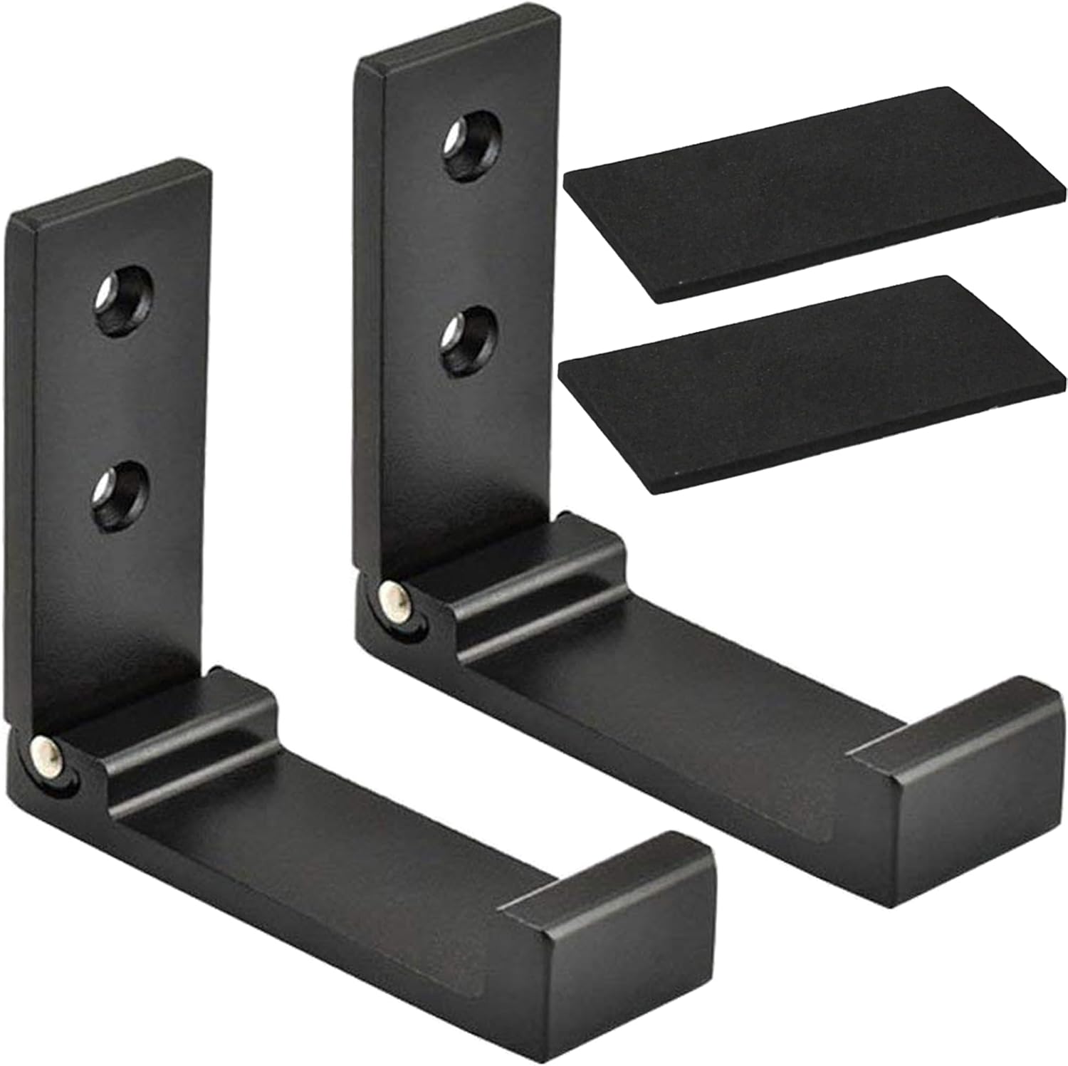Folding Coat Hooks, Foldable Wall Hooks for Hanging Aluminum Alloy Cloth Hanger Coat Hanger Headphones Holder Headset Wall Hanger Hook- Pack of 2 (Black)