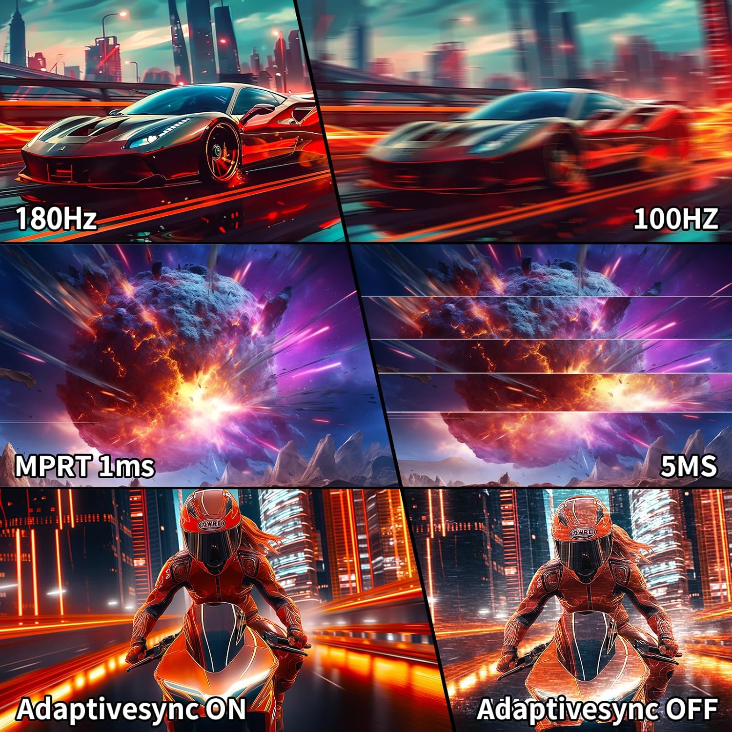 - Performance: 180Hz Refresh Rate | OD 1ms Response Time | FreeSync | Blue light reduction| Flicker-free