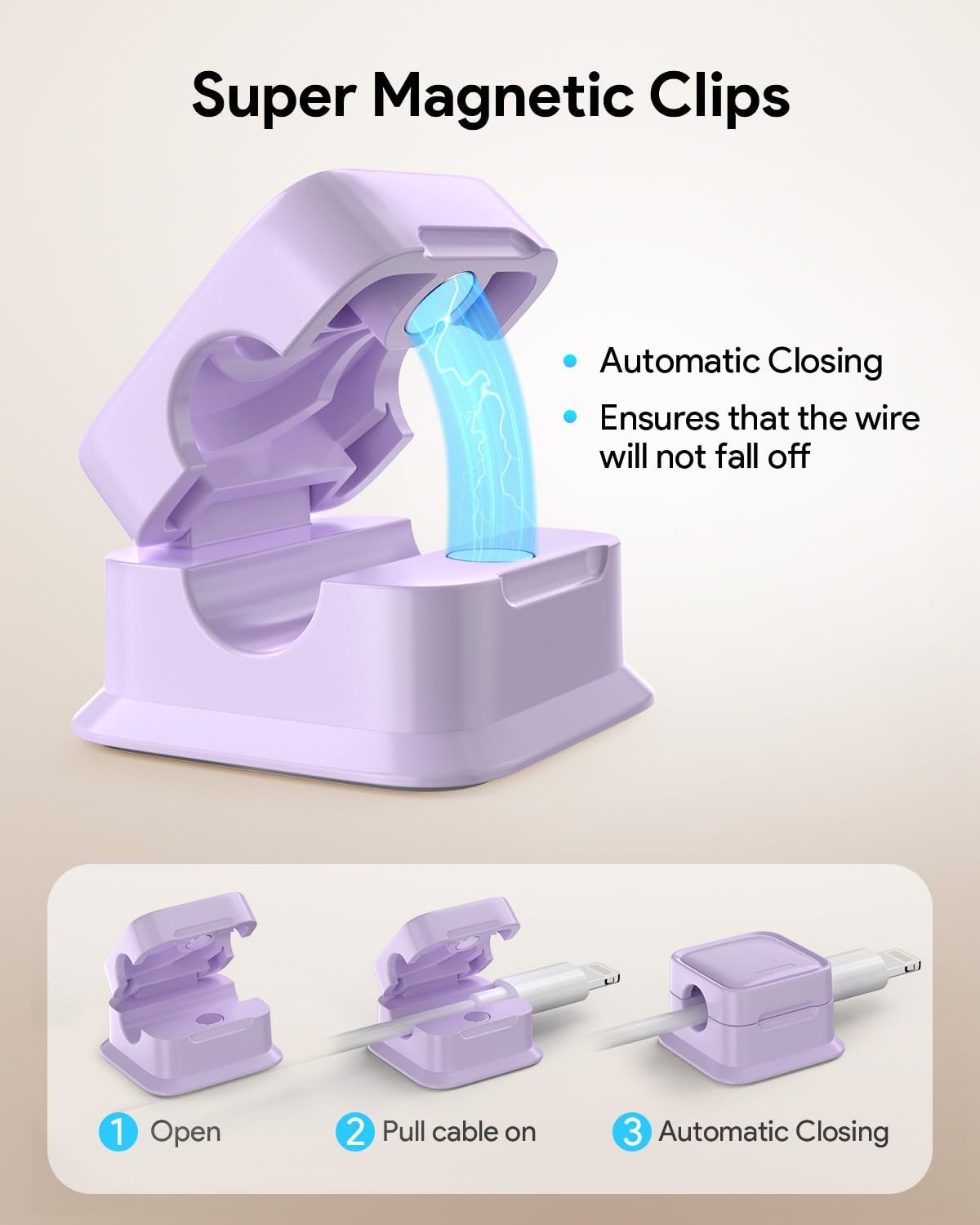 - Magnetic Locking & No Falling Off: Secure magnetic grasp opening and closing allow easy cord in,and powerful magnetic lock the organizer firmly to hold any charging head without falling off, more convenient to pull the cables out for smoothly using