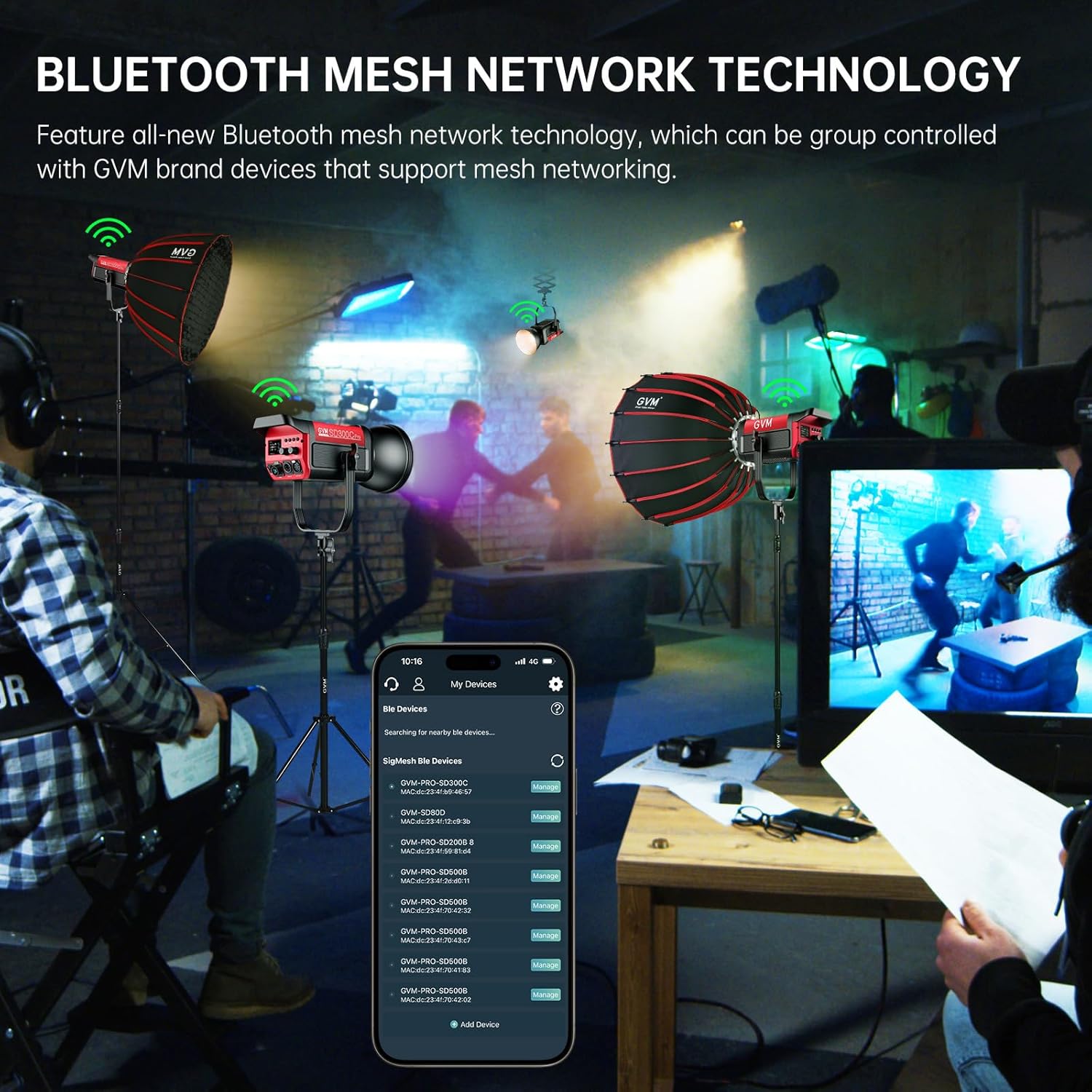 GVM RGB 300W Video Light Kit with Parabolic Softbox and Stand, Photography Lighting for Camera Studio Recording with Bowen Mount, COB Film Light with APP&DMX, Aluminum Alloy, 2000-10000K, CRI 97+