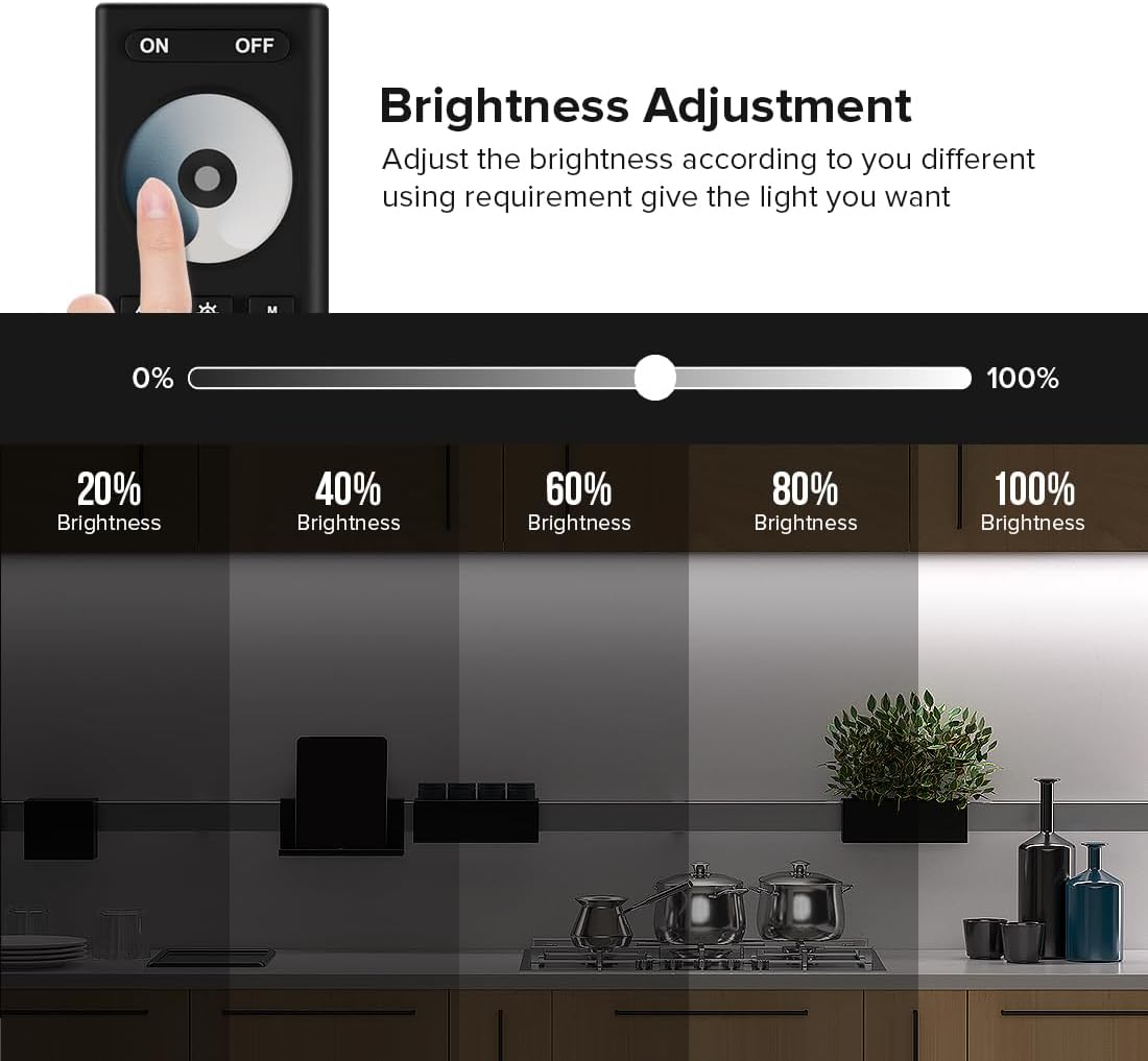 - 【Brightness adjusting】Adjust the brightness according to your different using requirements,give the light you want.New black appearance of the remote control.Comfortable hand feeling.