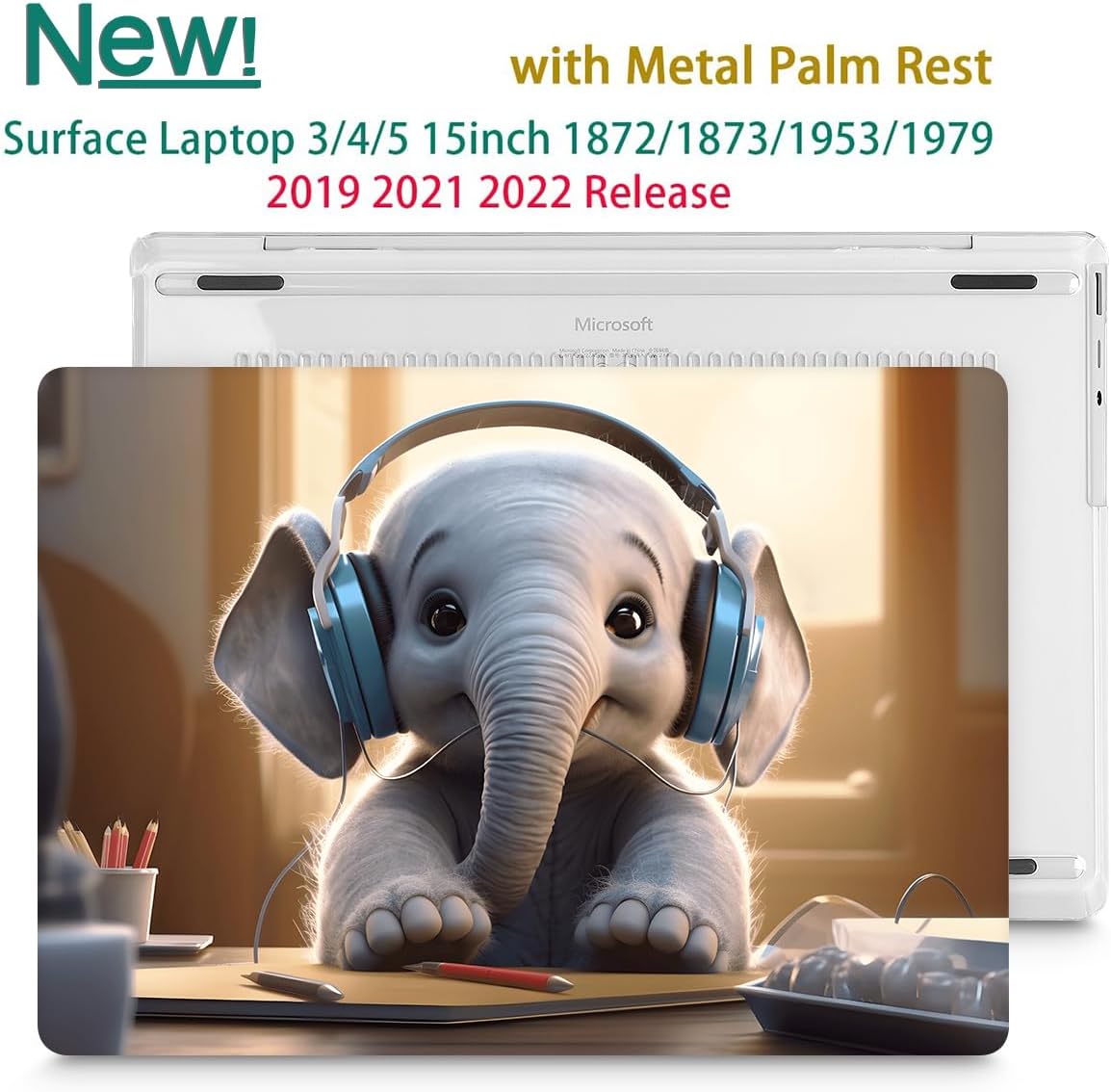Tuiklol Case for 15 Inch Microsoft Surface Laptop 5/4/3 2022-2020, Model 1979/1953/1872/1873 Hard Shell Cover, Keyboard Cover+Screen Protector+Dust Plugs, Elephant