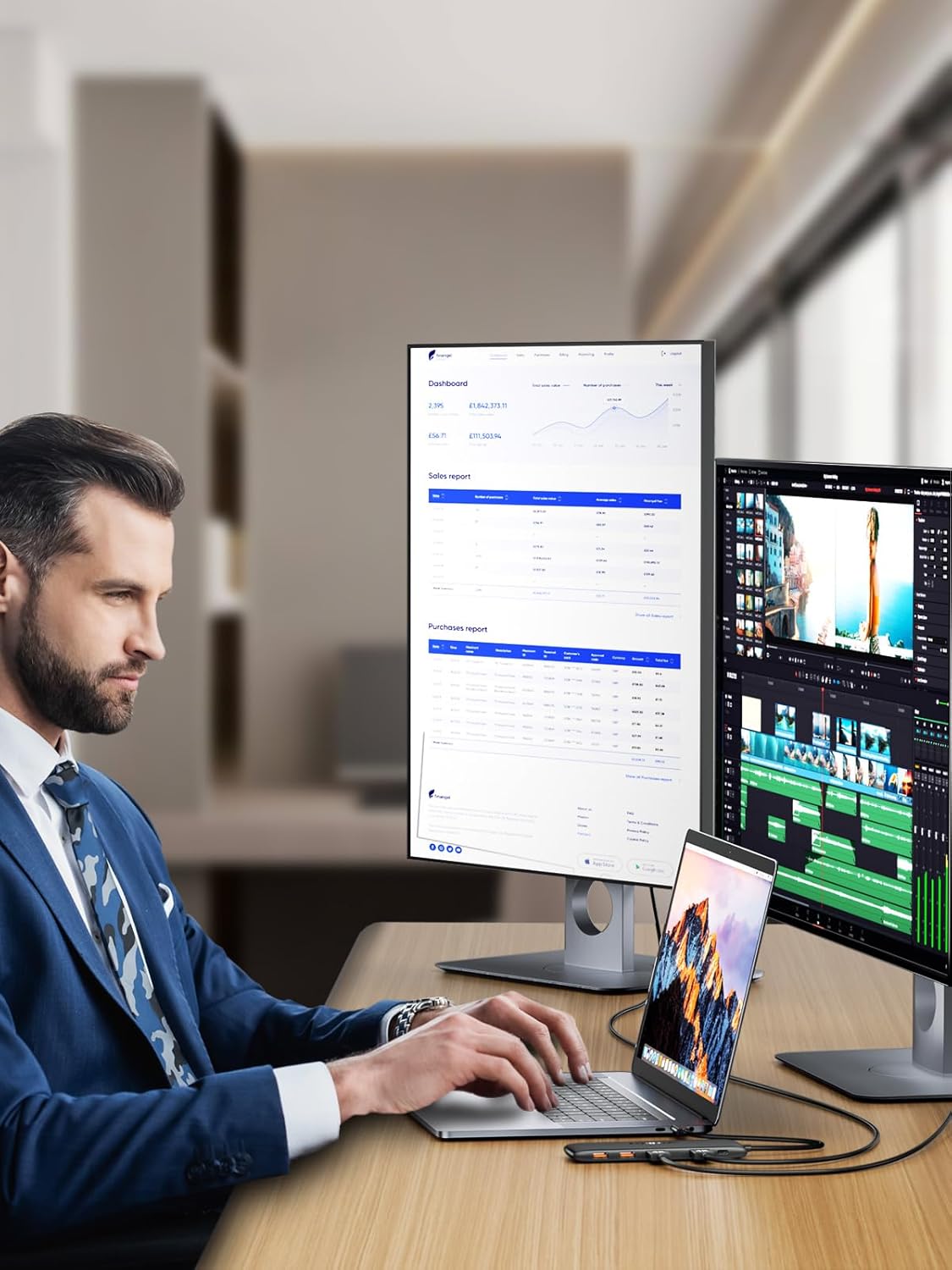 - [4K HD Display]: 2 HDMI in MST: Max 1080P 60Hz, 2 HDMI in SST: Max 4K 30Hz; Single HDMI: 4K 30Hz; Please note: lf you use it to connect to a Macbook, it supports mirror mode (SST-AAA mode), and supports extended mode (ABB Mode), but not support extended mode (ABC mode), no matter how many monitors you connect! The 4K resolution of this USB C to HDMI adapter ensures that the video output is crystal clear and sharp, making it ideal for streaming, gaming, and video editing.