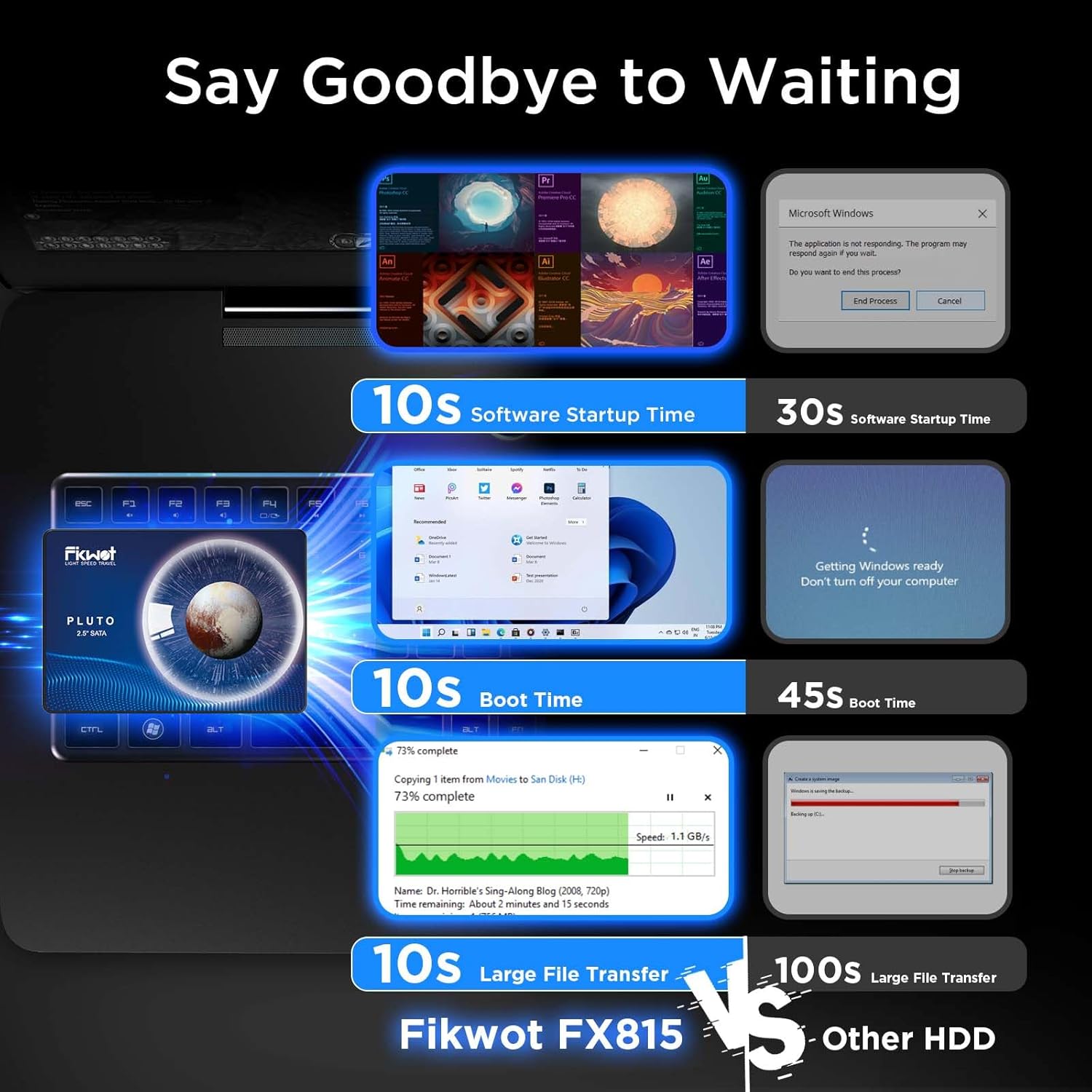 - 【Long Life】The Fikwot FX815 is shock-resistant, vibration-resistant, and reduces noise interference, providing a durable and quiet storage solution.Enjoy extended battery life as this SSD consumes 45x less energy than a typical hard drive.(ssd hard drive internal)