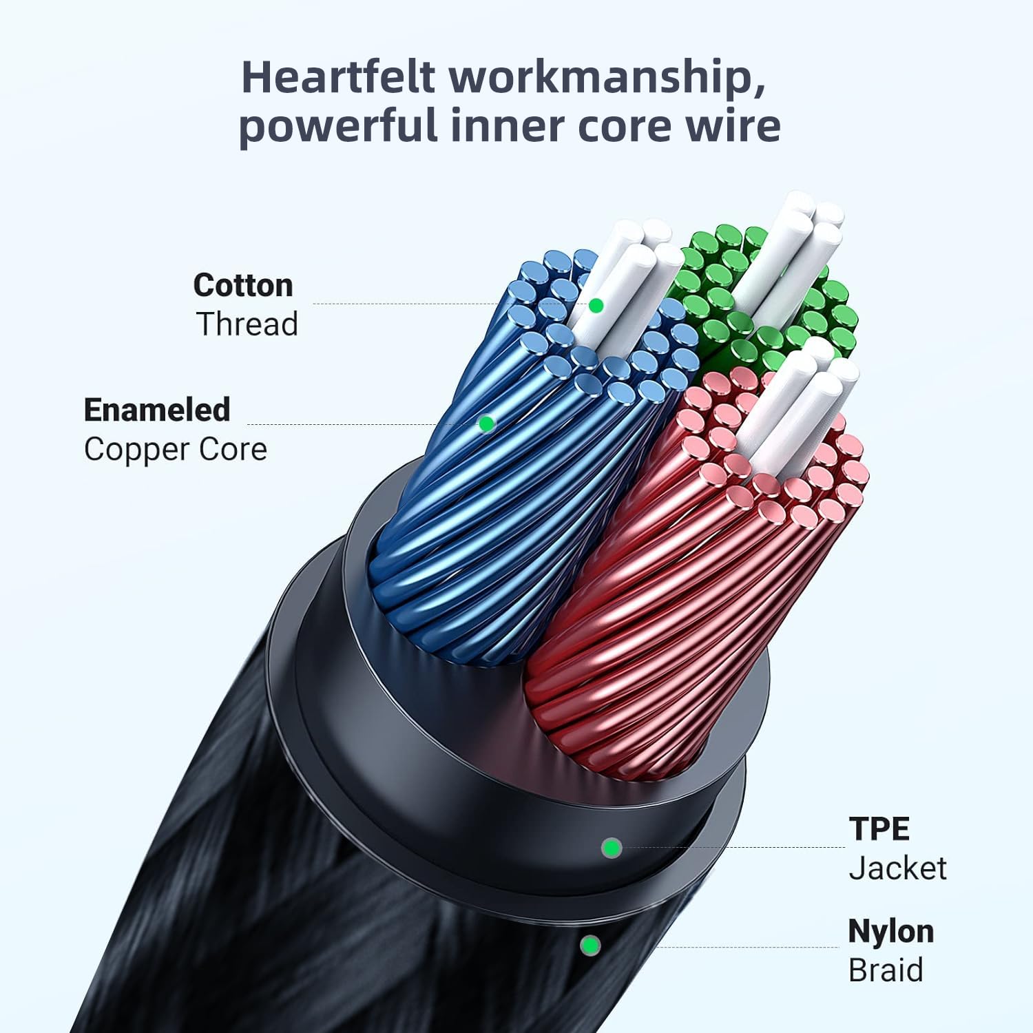 - 【Reinforced Upgrade】: Strong nylon braid allows the cable to withstand 10,000+ bends, making the cable sturdy enough to be durable