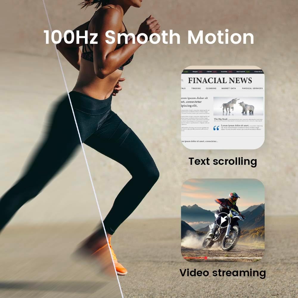 - 100Hz Refresh Rate: Reacts more quickly to changes, resulting in a smoother user experience