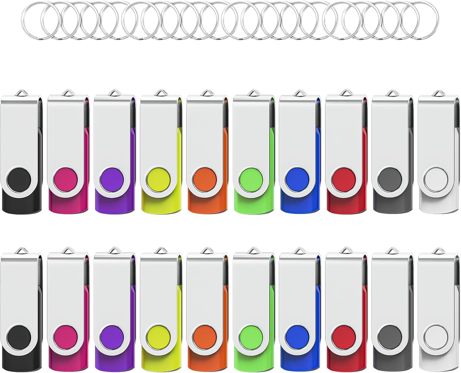 20Pack 1GB USB 2.0 Flash Drive with Keychains,Swivel USB Thumb Drives Memory Stick USB Drive for PC Laptop Computer (Mixcolors)