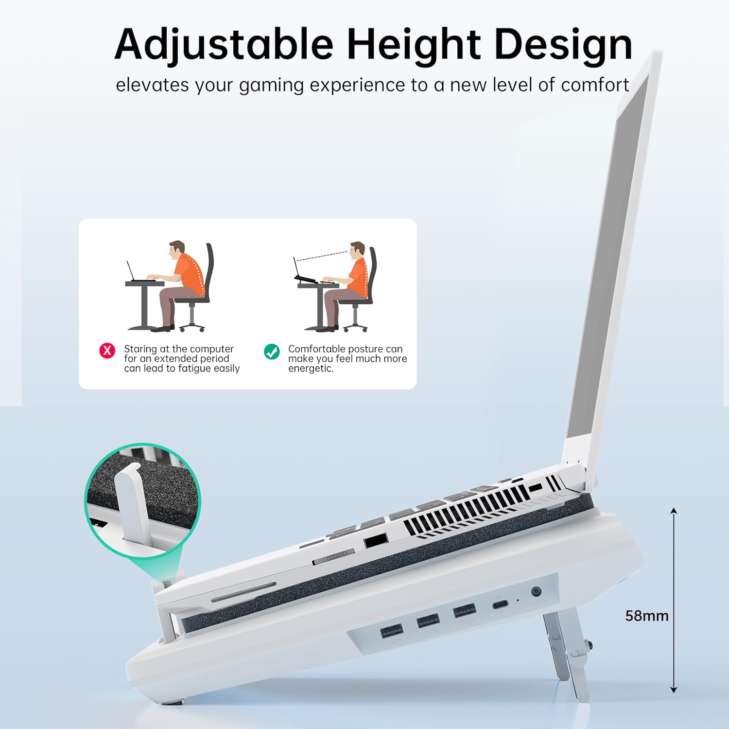 - User-Friendly Design: With 1 in 3 out USB Hub, you can connect keyboards, mouse and other devices, more convenient for you to use. Two non-slip baffle can prevent your laptop following down on slanting surfac. Adjustable Height helps to relieve neck pain caused by prolonged laptop use and incorrect posture.
