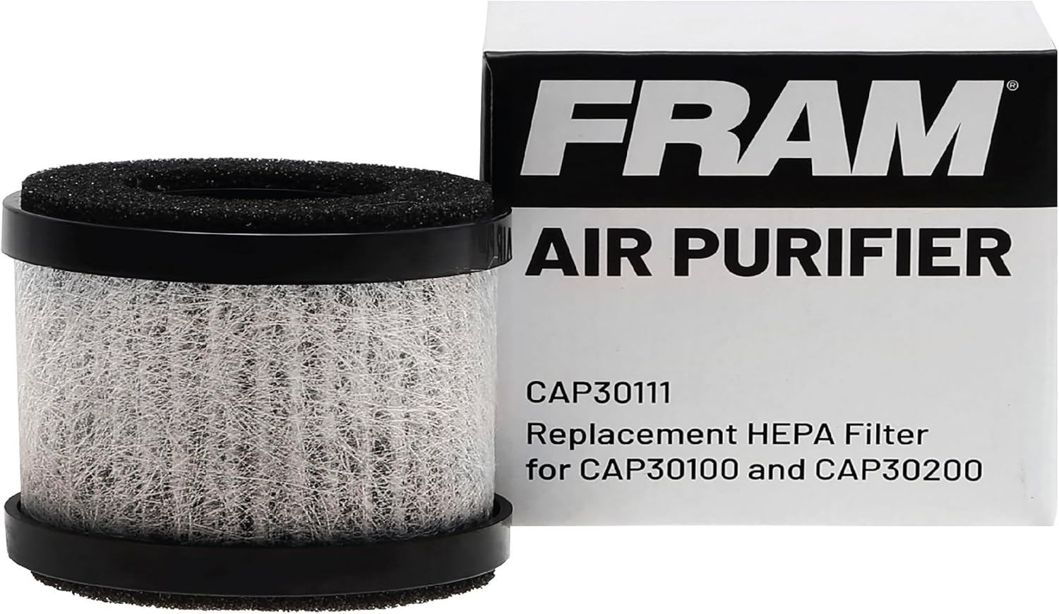 - AIR PURIFIER REPLACEMENT FILTER: Designed for use with the FRAM Portable Air Purifiers CAP30200 & CAP30100, this replacement air filter provides up to 500 hours of use for optimal air purification in your office, vehicle, or personal space