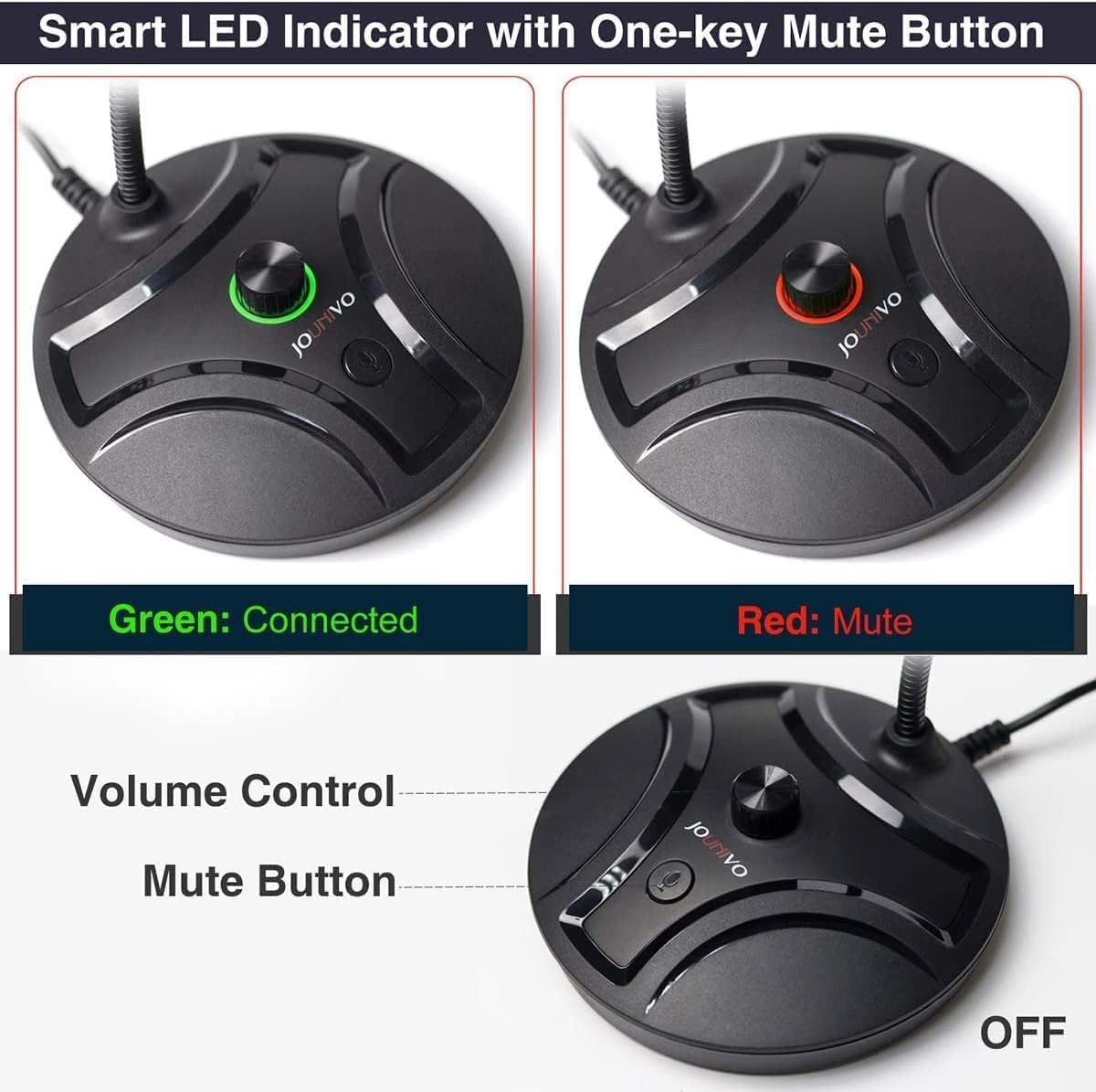 JOUNIVO USB Computer Microphone JV605 PRO with Mute Button & Volume Knob Compatible with PC Laptop Desktop Mac PS4, Play & Plug Gooseneck Mic Recording for Gaming, Streaming, YouTube, Vocal