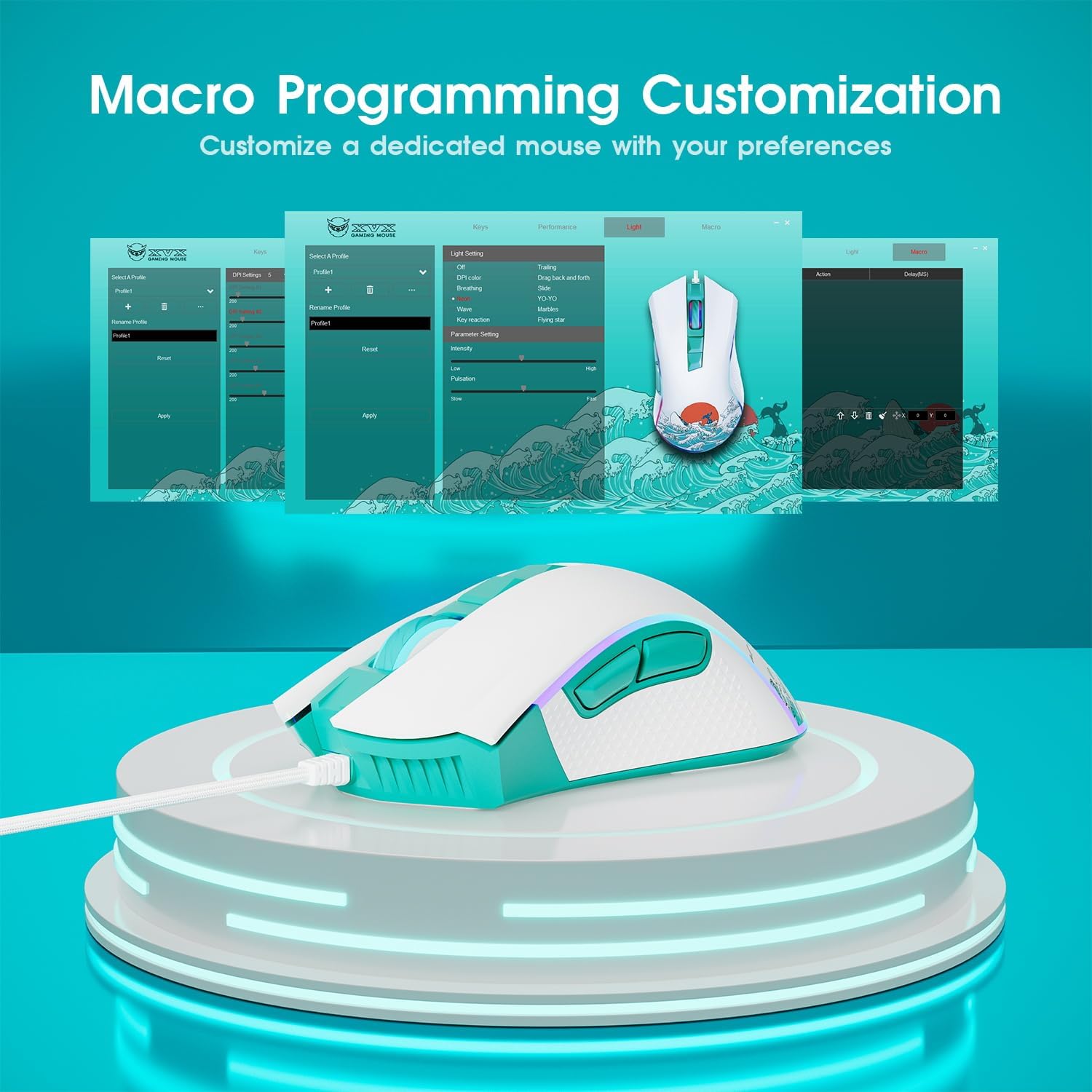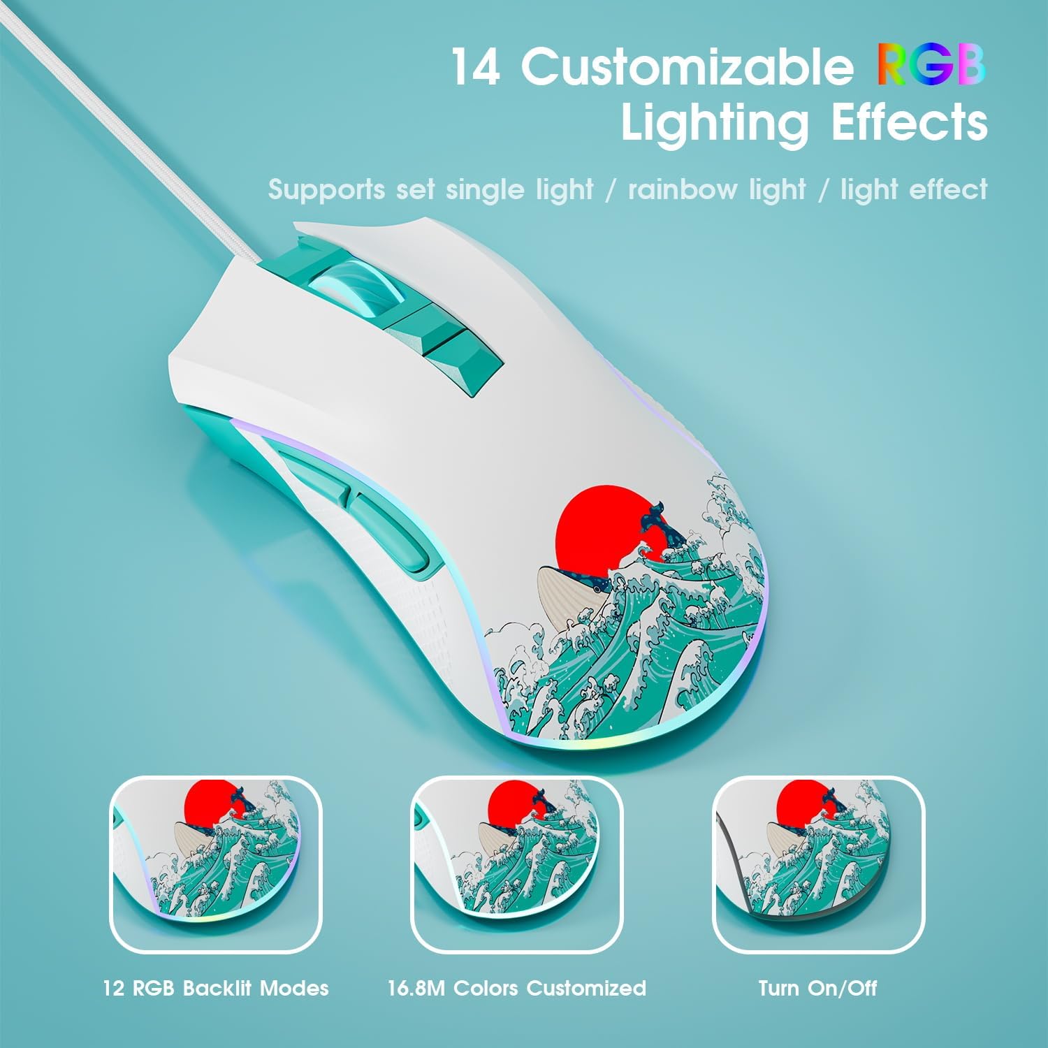 HITIME XVX Wired Gaming Mouse, 12000 DPI RGB Mouse with 12 Backlit Modes & 7 Macro Buttons, PC Gaming Mice Support DIY Keybinding, Gamer Computer Mice for Laptop PC Mac Windows, Coral Sea