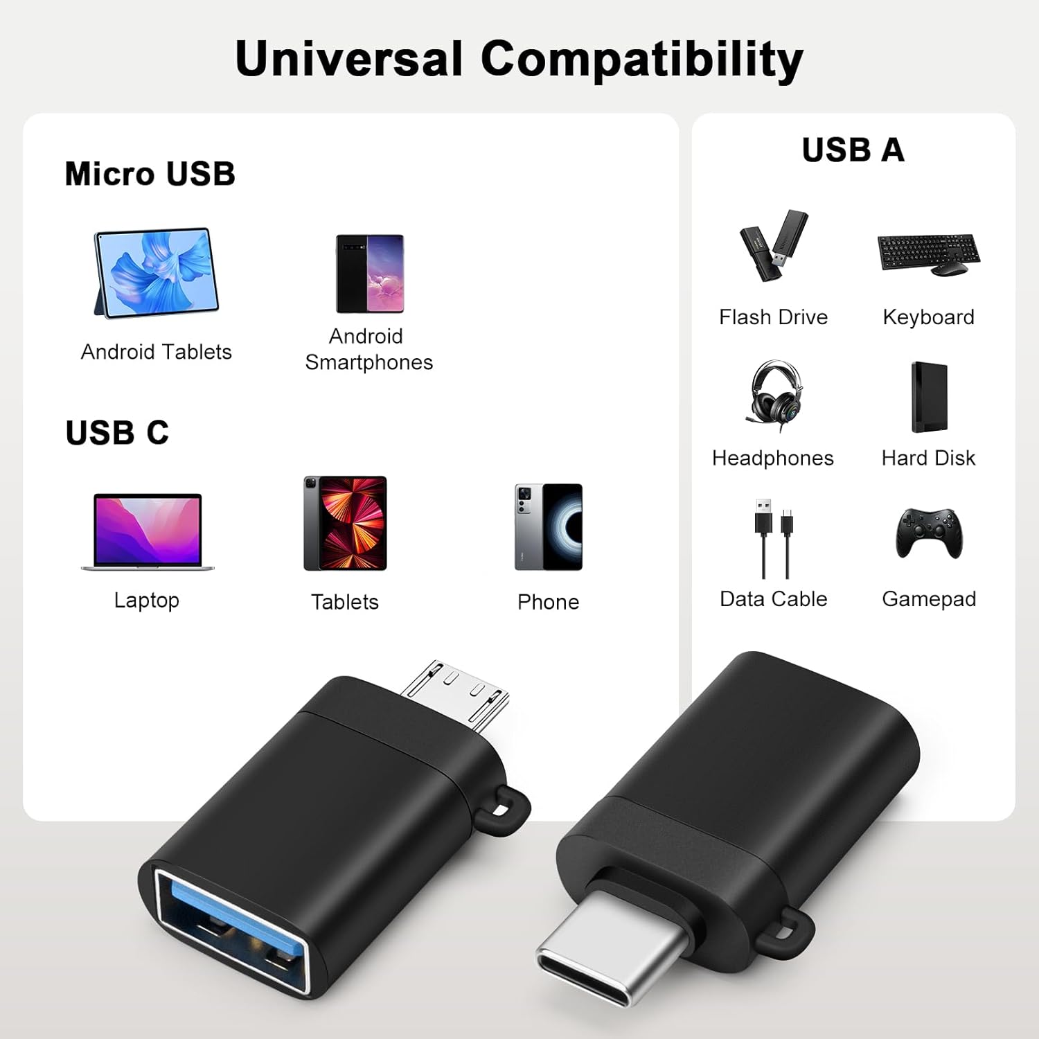 - Compatible with various devices: These Cell Phone OTG Adapters support USB-A and Micro USB devices, making them ideal for use with OTG Micro Devices, Google, MacBook, and Ipad.