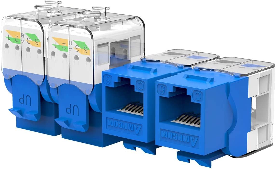 AMPCOM CAT6 Keystone Jack Tool-Less RJ45 UTP, No Punch-Down Tool Required Module Coupler -12-Pack Blue