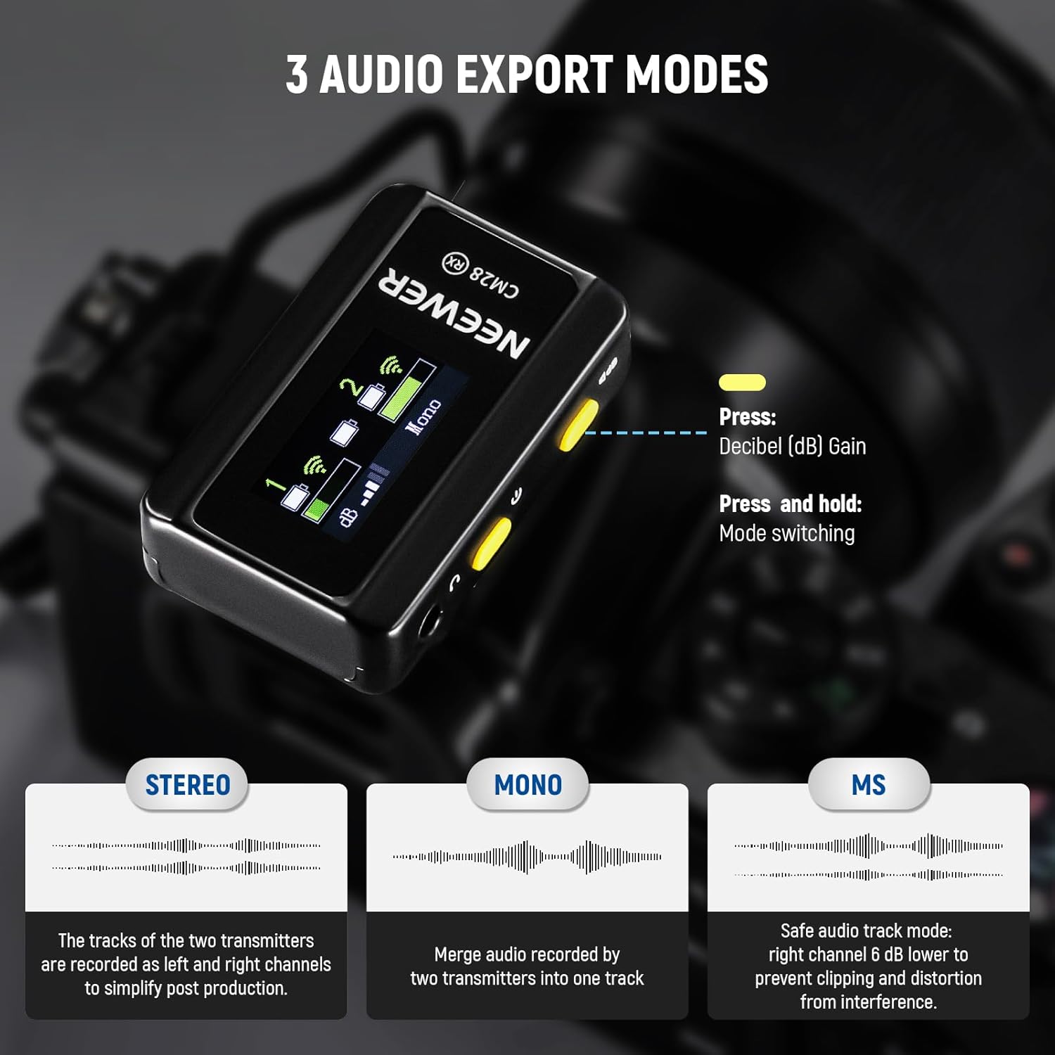 - 【Standalone Recording & 4GB Audio Storage】 The transmitter doubles as a recording pen device with 4GB storage for saving up to 9 hours of uncompressed 48KHz WAV audio files.