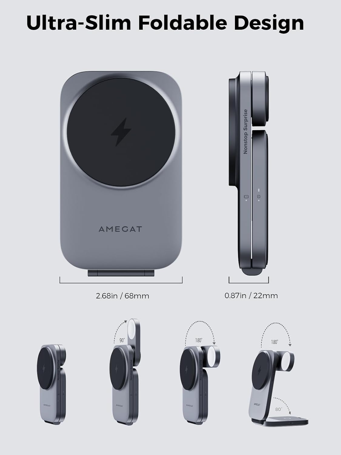 - Foldable & Portable Design: This magnetic charger stand featuring MagFusion Z foldable design collapses into a compact size only 17.5mm thickness for easy portability, ideal for travel or desk-saving setups. A handy travel case included