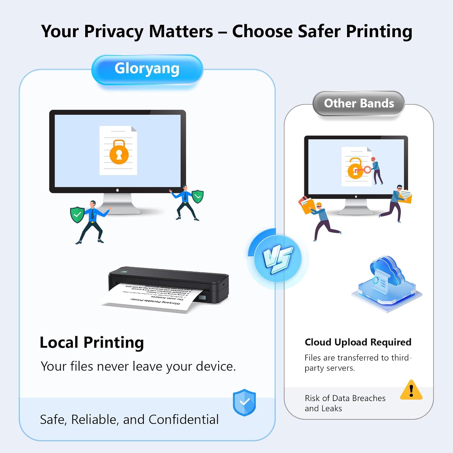- Space-Saving Design - Say goodbye to clutter with the built-in paper bin of the Gloryang printer. It saves space and keeps your workspace tidy, whether you're on the go or in a car. With two ways to load thermal paper and the ability to print documents ranging from 2 to 8.5 inches, it caters to various printing needs.