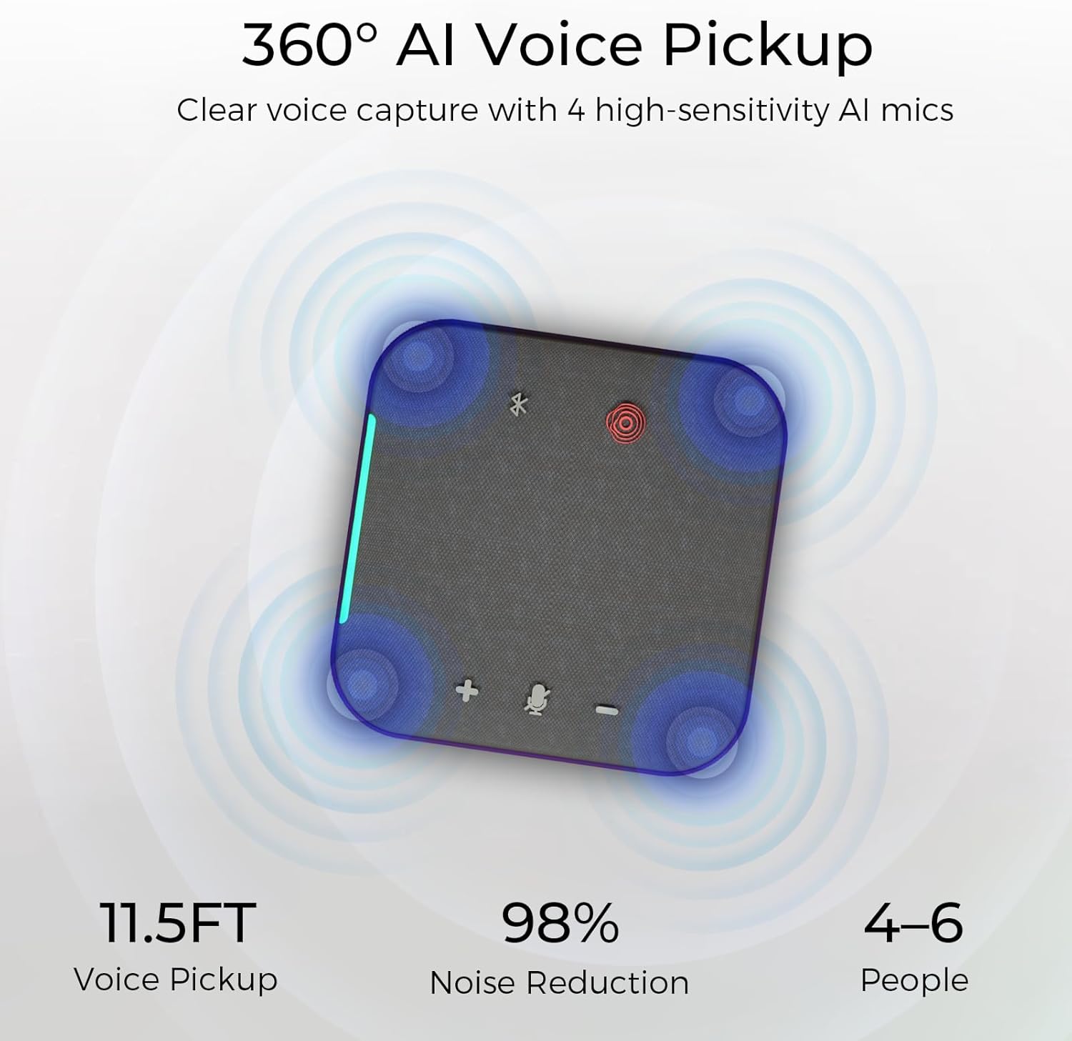 - 360° Voice Pickup – With 4 built-in mics, this conference speakerphone captures voices from every angle, ensuring clear communication for everyone in the room.