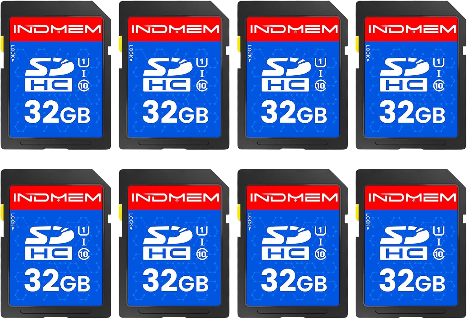 INDMEM SD Card 32GB, 8 Packs Class 10 32GB Flash Memory Card MLC Standard Secure Digital Cards Camera Card