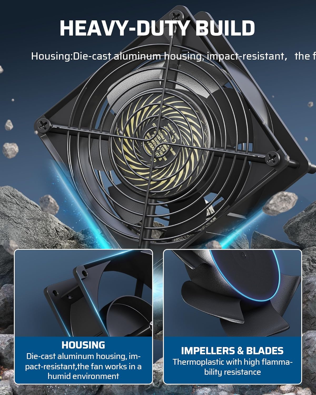 - [Upgraded Waterproof] Unlike other fans, our 120v fan is engineered to withstand high-humidity environments, featuring a rust-proof and waterproof body; ideal for wet environments (note: avoid getting the speed controller and plug wet)