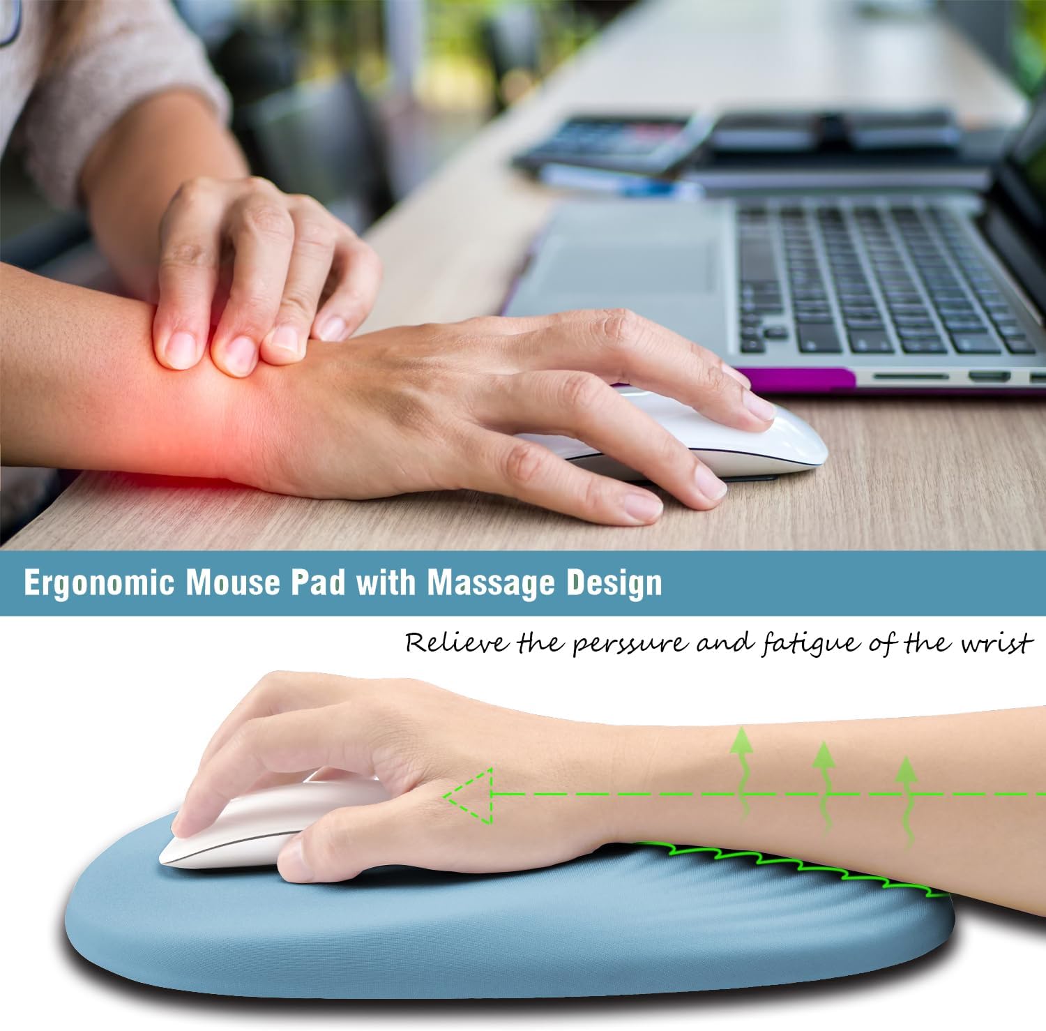 Ergonomic Mouse Pad Wrist Support, Mouse Pad with Wrist Rest, Entire Memory Foam & Non-Slip PU Base MousePads with Stepped-Wedge Design for Pain Relief, Desk, Office, Home, Sky Blue