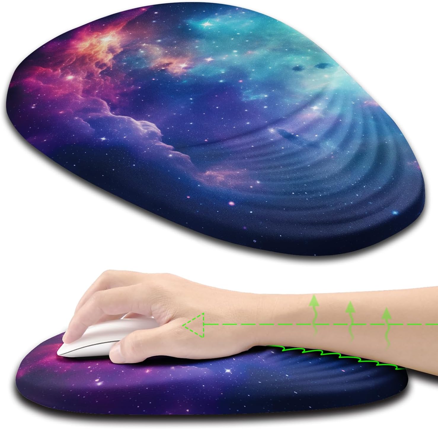Ergonomic Mouse Pad Wrist Support, Mouse Pad with Wrist Rest, Entire Memory Foam & Non-Slip PU Base MousePads with Stepped-Wedge Design for Pain Relief, Desk, Office, Home, Galaxy