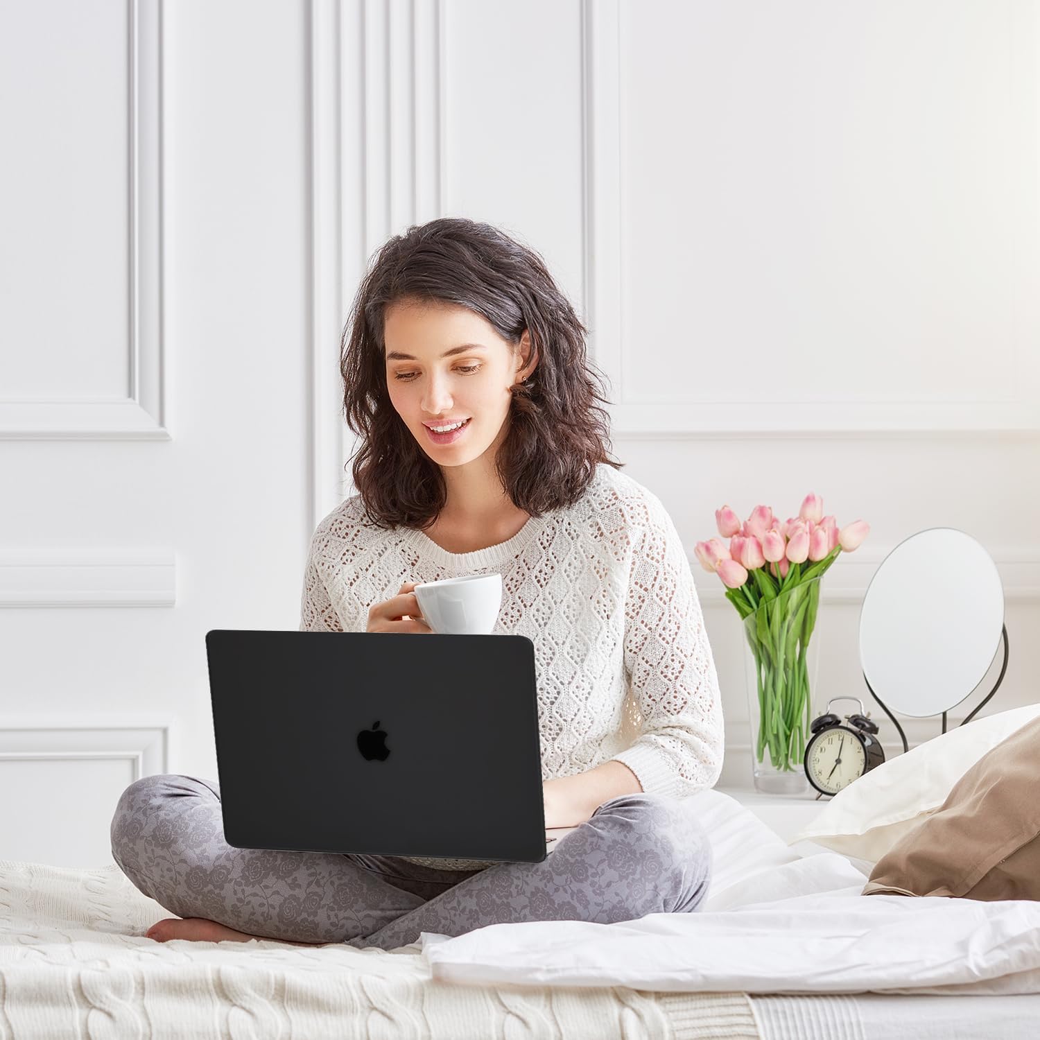 Matt Black Case for MacBook Pro 13 inch M2 M1 A2338 A2289 A2251 A2159 A1989 A1706 2023-2016 Release with Touch ID, 6 in 1 Plastic Hard Shell&Keyboard Cover&Screen Protector&Webcam Cover