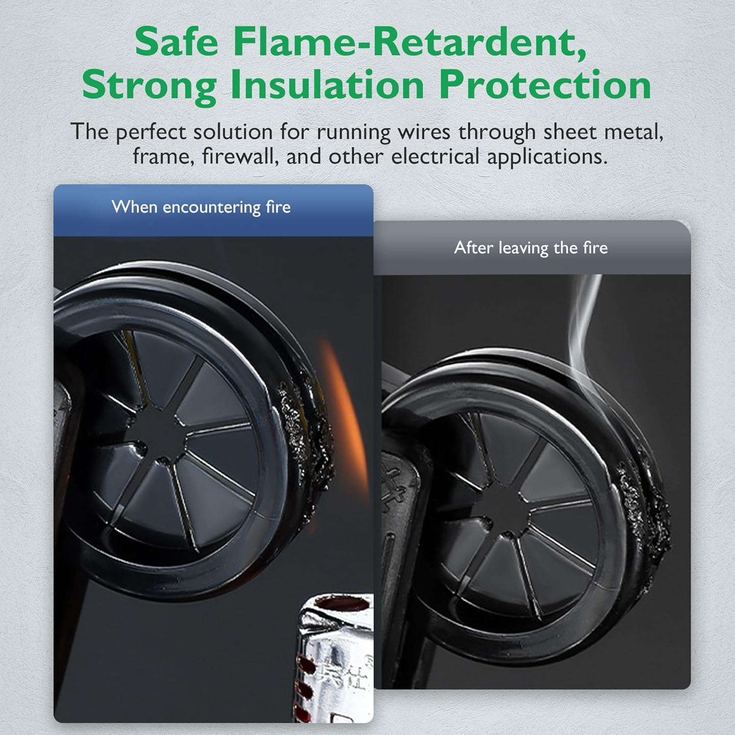 - Multi-Function: Rubber plug for holes are dustproof, insulation, flame retardant; This hole grommets helps protect wires, cords and cables from chafing and scraping against sharp metal edges, pointed corners and rough surfaces; Suitable for all kinds of high and low voltage electrical cabinet and the box of the inlet and outlet protection seal; Make your home, office, or workshop nice and your life easily safe with this all-purpose rubber grommet