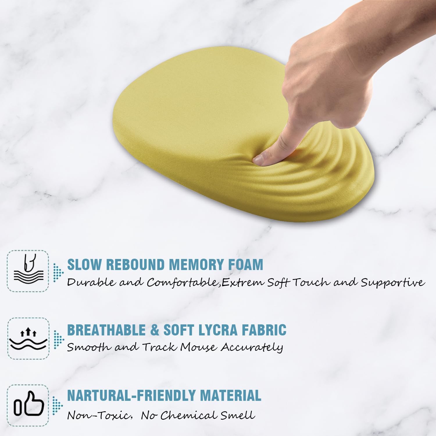 Ergonomic Mouse Pad Wrist Support, Yellow Mouse Pad with Wrist Rest, Foam Massage Design & Non-Slip PU Base MousePads for Pain Relief, Desk, Office, Home