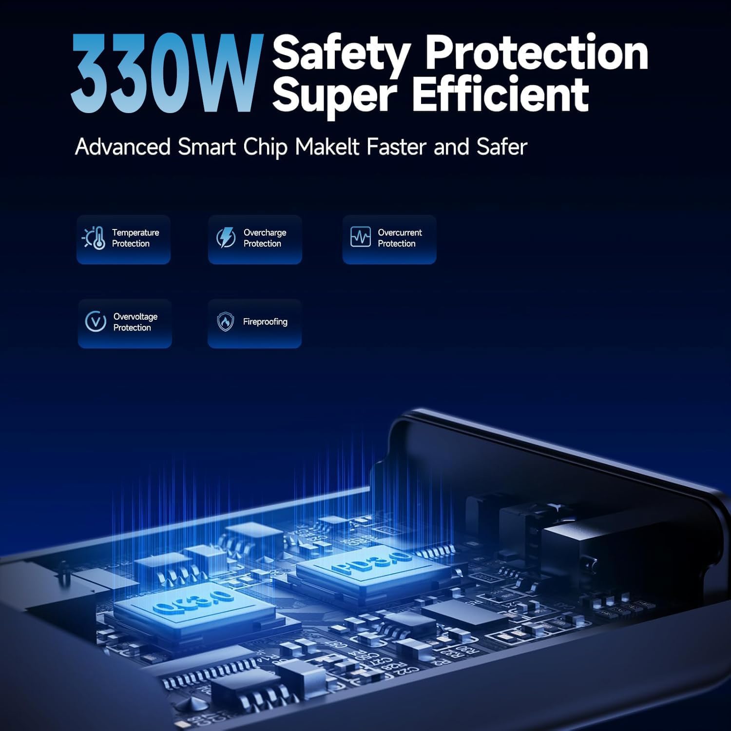 330W USB C Charger, Fast Compact 3-Ports GaN Charger PD 3.0 Fast Charging Station for MacBook Pro/Air, iPhone, iPad Pro, Dell XPS, Galaxy, Pixel, Apple Watch, and More